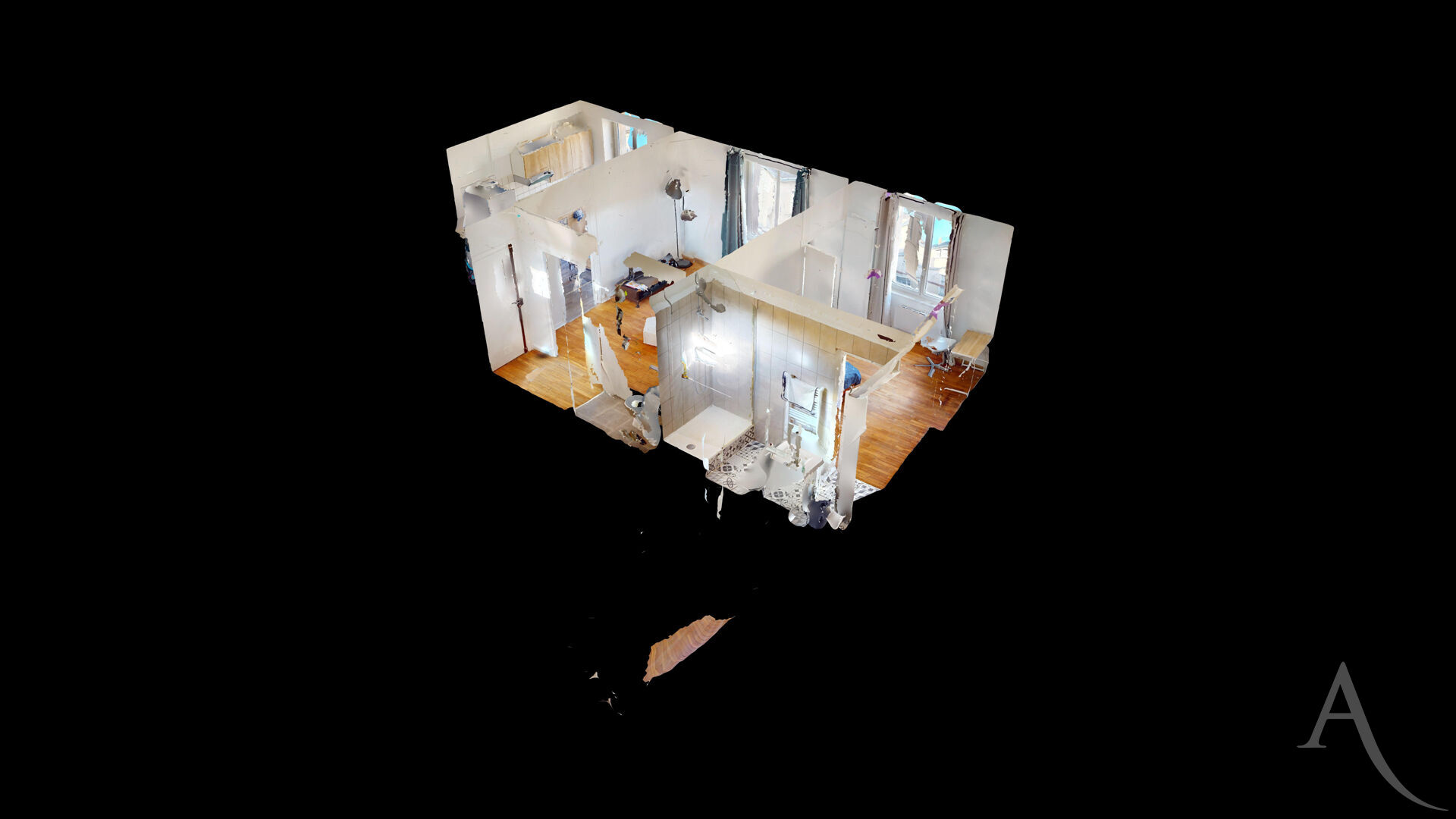 Entrée, toilettes, séjour, cuisine aménagée et équipée, une chambre, salle d'eau.