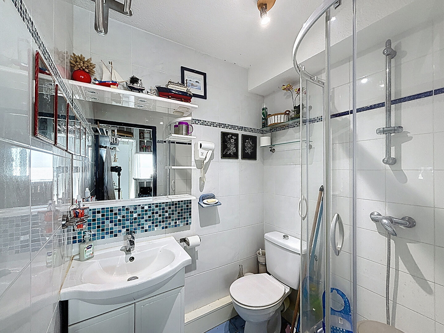 Situé au 1er étage d'une petite copropriété, découvrez cet appartement T1 qui se compose d'une entrée avec coin cabine, d'une agréable pièce de vie lumineuse ouvrant sur une terrasse couverte offrant une vue mer exceptionnelle, d'une kitchenette équipée, ainsi que d'une salle d'eau avec wc.