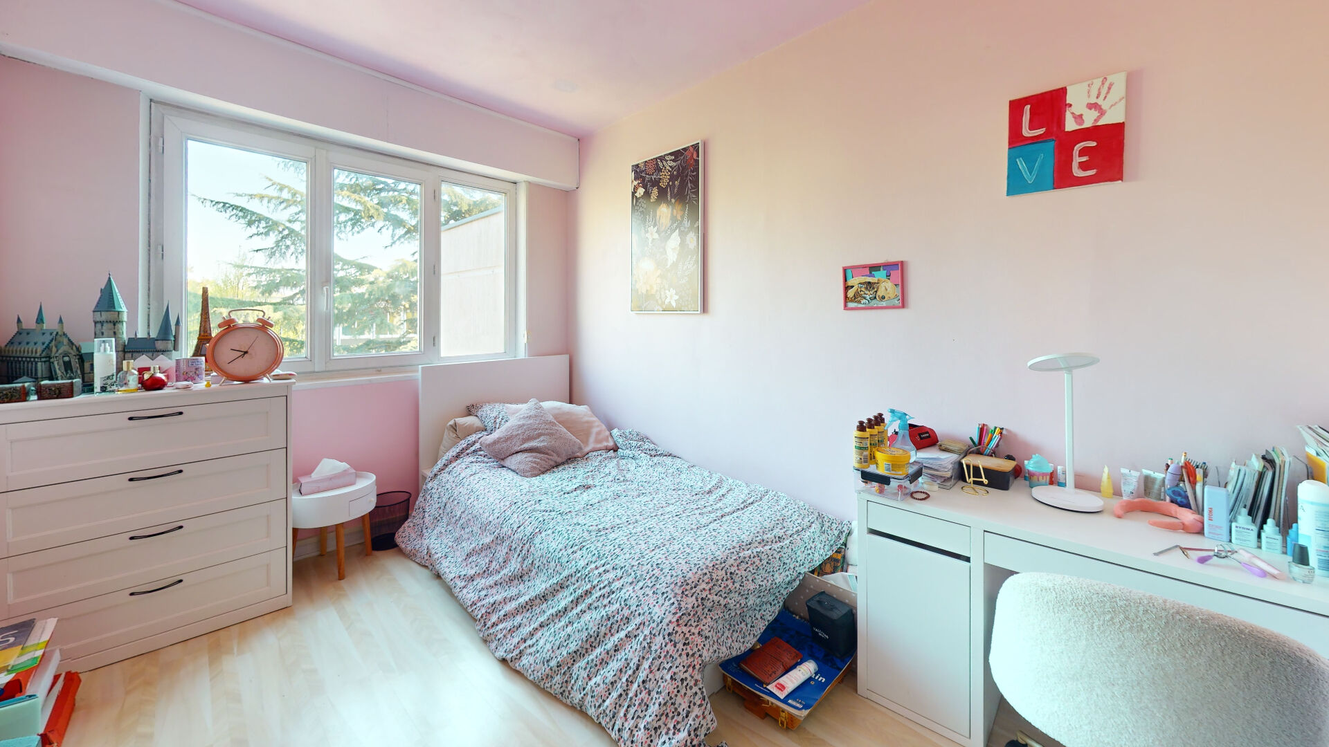 Il se compose d'une entrée desservant un séjour lumineux offrant un accès à une chambre, une cuisine aménagée et équipée avec un cellier, un dégagement avec placards donnant accès à un dressing, deux chambres, une salle d'eau ainsi qu'un WC indépendant.