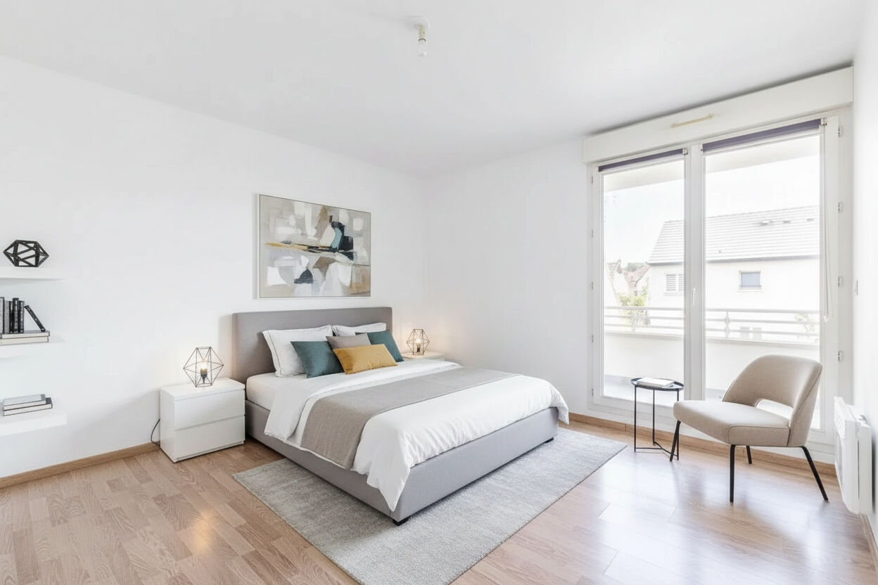 Dès l'entrée, vous serez séduits par un séjour particulièrement lumineux donnant sur un balcon et offrant une belle qualité de lumière tout au long de la journée. La cuisine profite de cette luminosité naturelle et complète harmonieusement l'espace de vie.