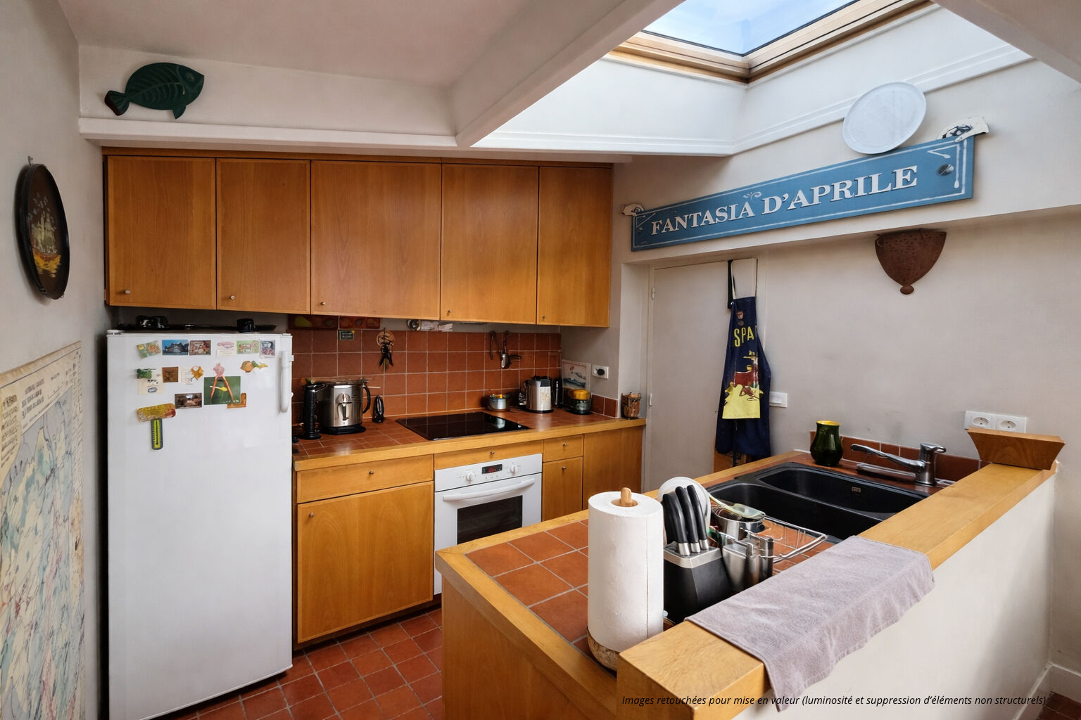 Le premier niveau accueille deux chambres paisibles avec de nombreux rangements et une salle d'eau avec son puit de lumière. Quelques marches plus haut un agréable salon baigné de lumière s'ouvre sous les toits, porté par de nombreuses fenêtres apportant de la lumière. La cuisine aménagée s'intègre naturellement, et un espace attenant invite à la détente, à la lecture ou à la création.