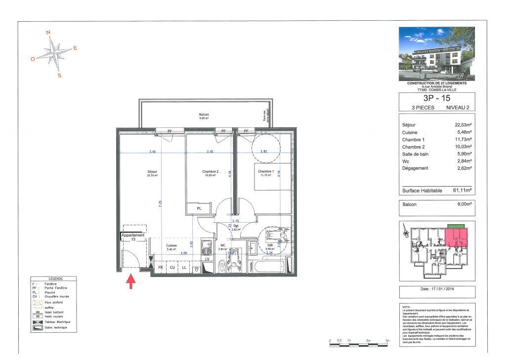- Vente appartement 3 pièces, 61.27m², Combs-la-Ville