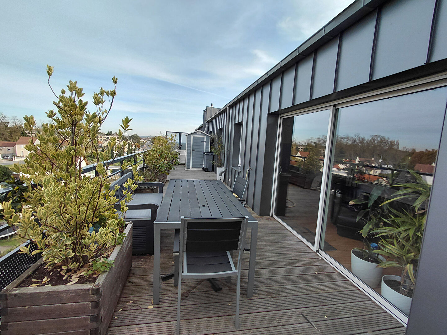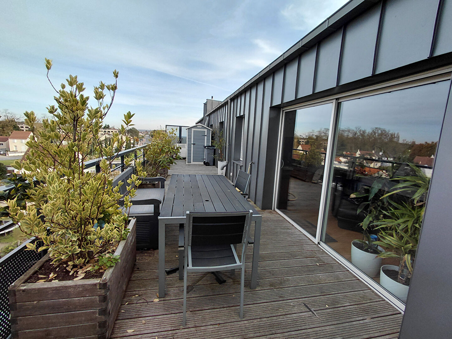 Situé dans une résidence récente BBC venez découvrir ce magnifique appartement 4 pièces au dernier étage. Il vous offre une spacieuse et lumineuse pièce de vie de plus de 53 m² avec cuisine US équipée, un dégagement desservant 2 chambres avec placards, deux salles d'eau, 2 WC et rangements . Un double box en sous-sol . Le plus un grand balcon et un rooftop de 35 m² pour passer de bon moments entre amis ou en famille. Belles prestations , un bien unique à Conflans.
