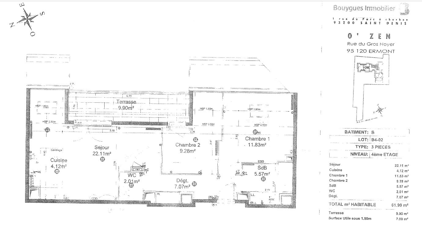 - Vente appartement 3 pièces, 62.61m², Ermont