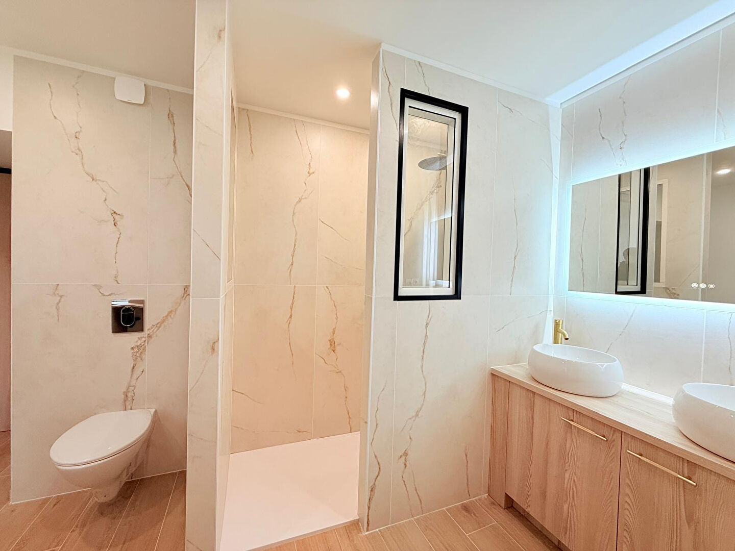 Entièrement refait à neuf, il offre une pièce de vie agréable et lumineuse avec une cuisine moderne aménagée, ouverte sur le séjour. Les matériaux ont été choisis avec soin : sols contemporains, finitions soignées, salle d'eau élégante avec douche à l'italienne et double vasque, le tout dans un esprit