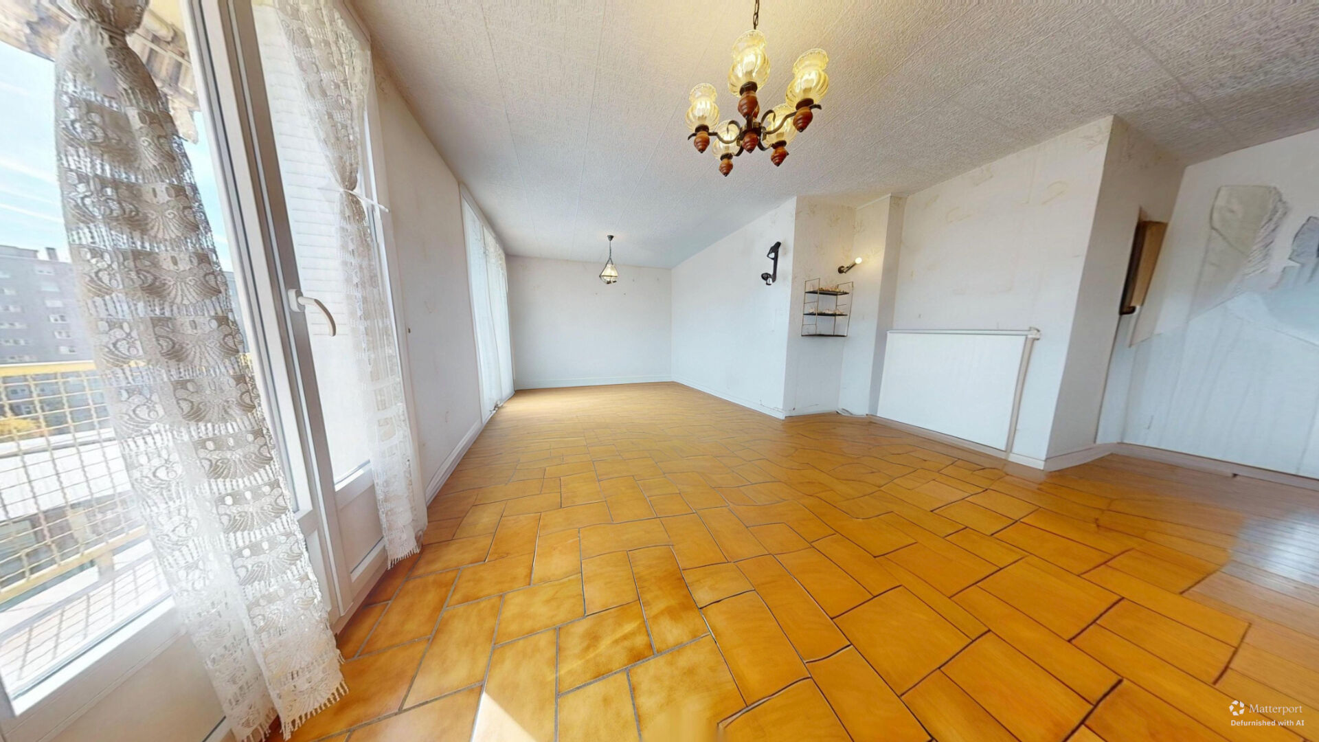 La pièce de vie, spacieuse, traversante et baignée de lumière, s'ouvre sur un balcon, apportant un agréable espace extérieur. En face, la cuisine, tout aussi vaste et fonctionnelle, complète cet espace de vie convivial.