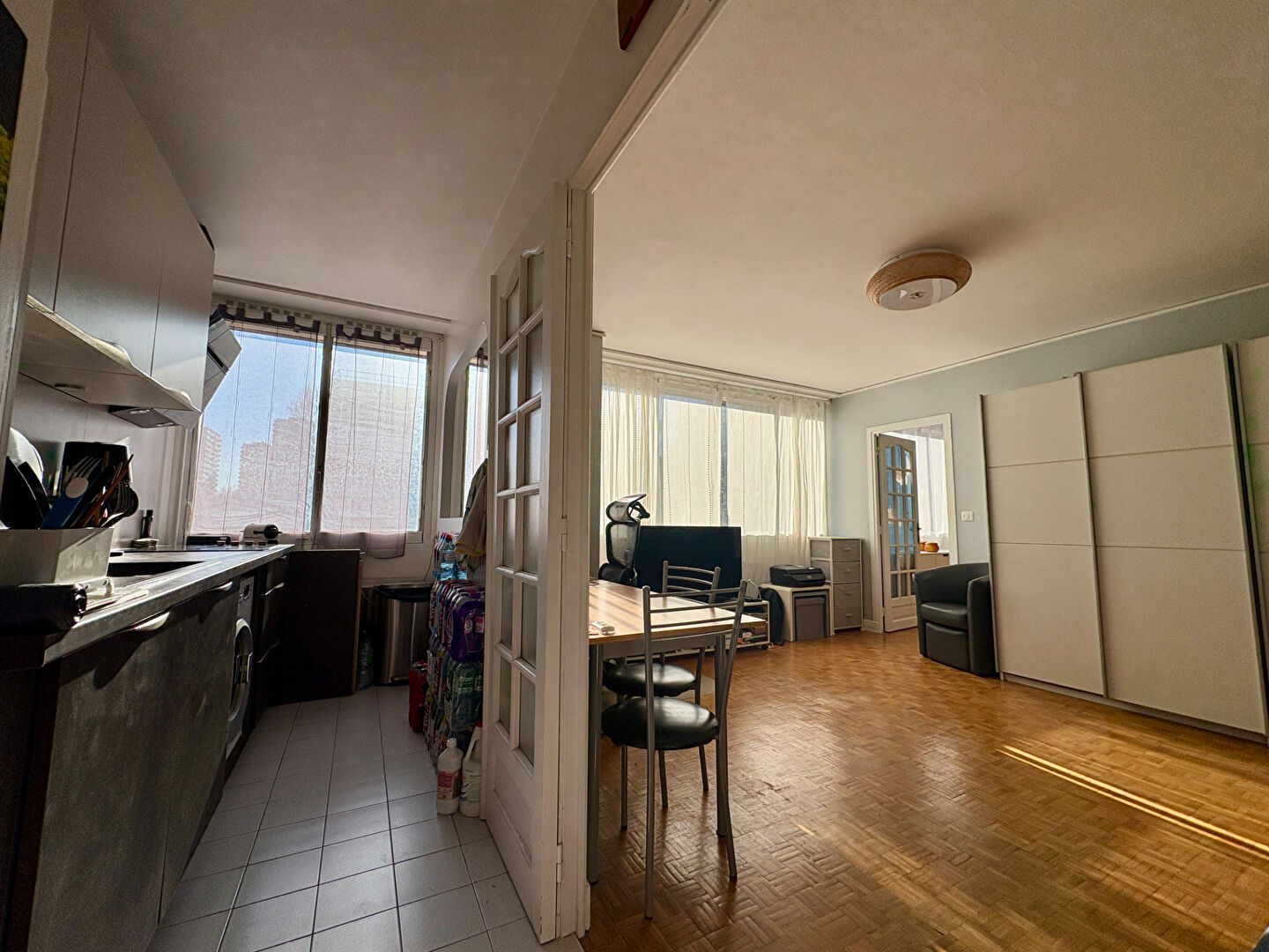 - entrée avec rangements, séjour exposé SUD et sans vis à vis, chambre, cuisine ouverte aménagée/équipée, salle d'eau, cellier et WC.