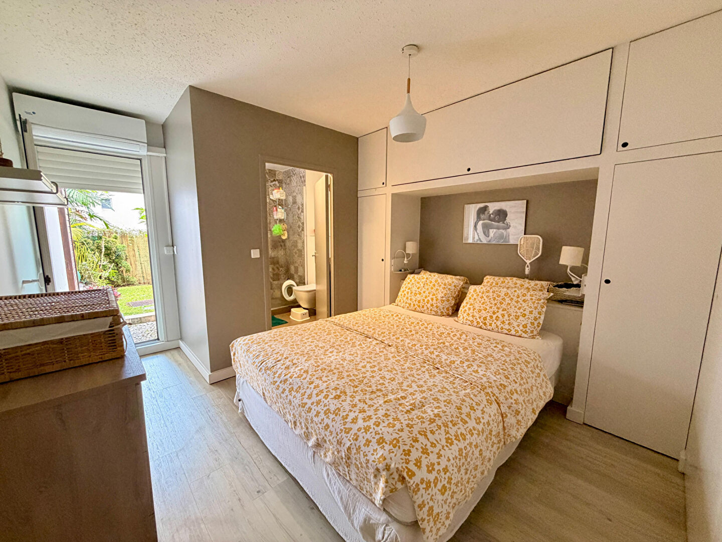 Espace nuit : Un dégagement desservant deux chambres climatisées avec placards, une salle de bains et un WC indépendant.