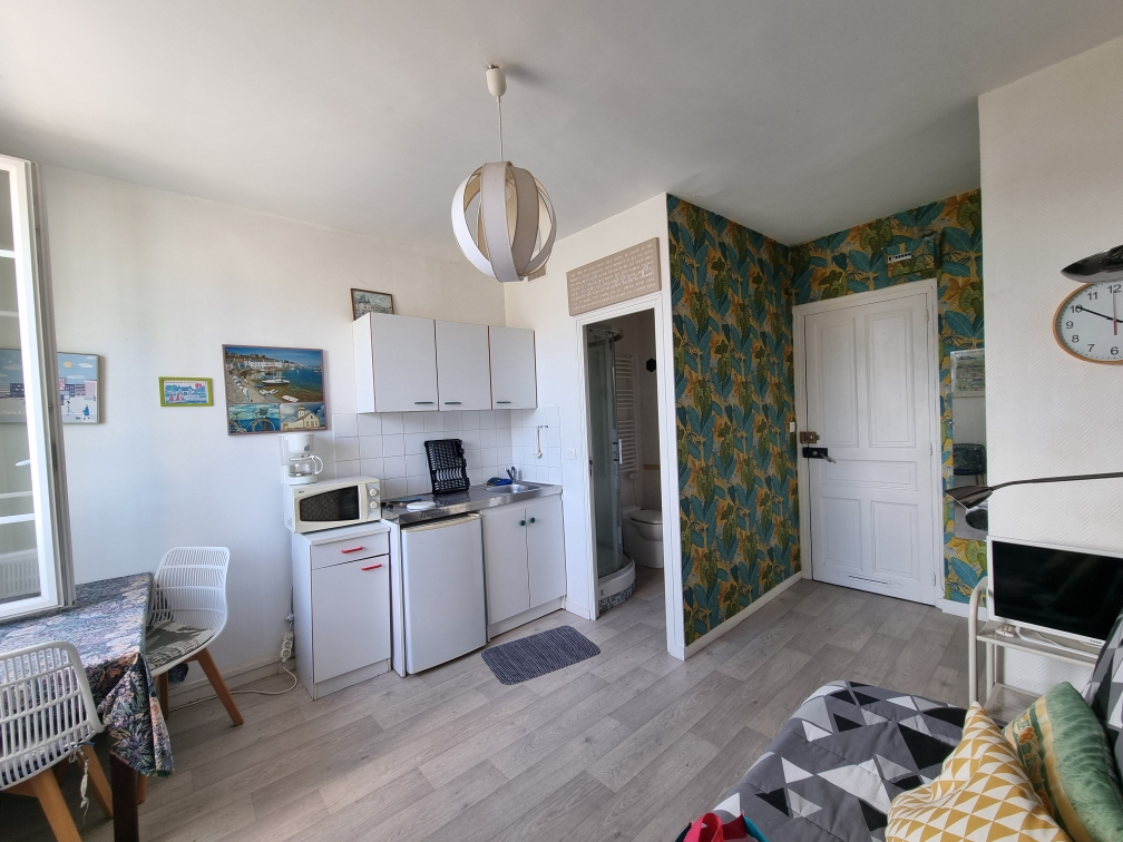 BEG MEIL - Au coeur de la station, à 50 mètres de la cale , venez découvrir ce studio de 17m² dans une résidence de 3 étages avec ascenseur. ~Il comprend une pièce de vie avec kitchenette, une salle d'eau avec cabine de douche et WC. Idéal pour un week-end à la mer ou investissement locatif.