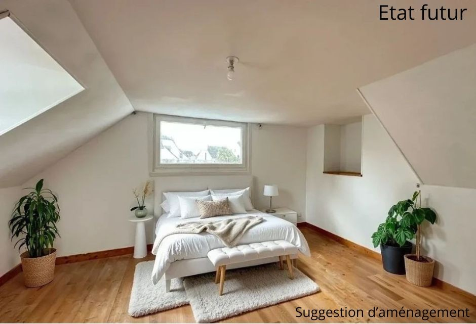L'appartement de 56 m² environ, est composé, d'une jolie pièce de vie, de deux chambres et d'une salle d'eau avec WC. Un budget doit être prévu pour terminer la rénovation (pose d'une cuisine, d'une paroi de douche et d'un lavabo, rénovation des murs).