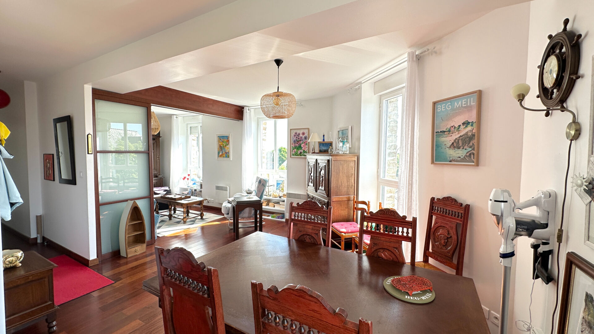 L'appartement a été repensé avec la suppression d'une chambre au profit d'une spacieuse pièce de vie, une porte à galandage déjà installée permet toutefois de recréer facilement une seconde chambre selon les besoins.