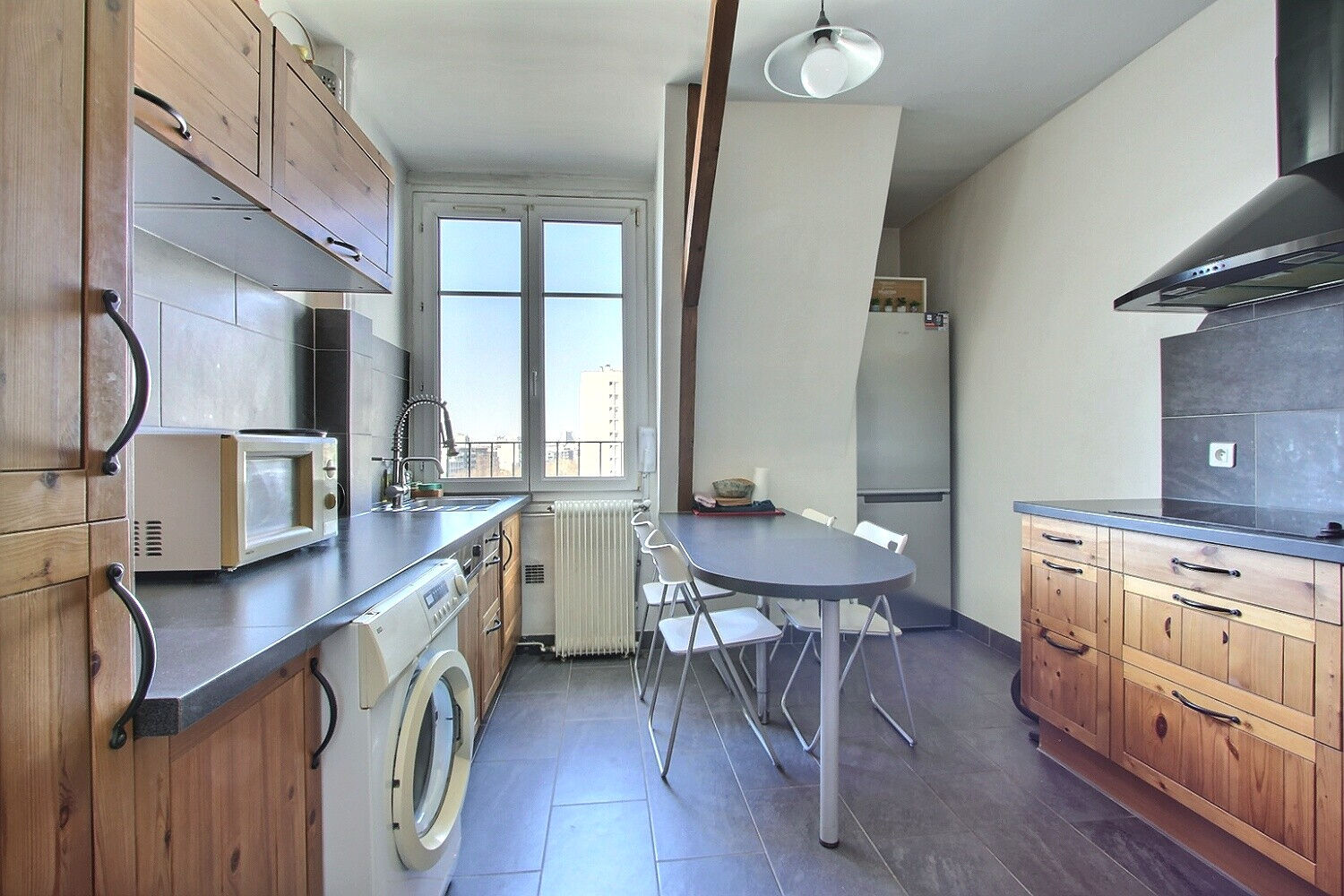 Lumineux, calme, traversant, au charme de l'ancien avec parquet et poutres, il se compose d'une entrée, d'une grande cuisine dinatoire, d'un séjour avec vue ciel et vue imprenable sur la Tour Eiffel, d'une grande chambre avec rangements et d'une salle d'eau avec WC. A proximité en plus du métro diverses lignes de bus 177, 277, 235, 577, 340.
