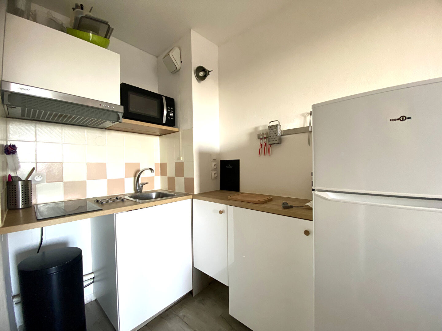 Le bien comprend une entrée avec placard, une salle de bains rénovée, des WC séparés, un séjour avec cuisine ouverte aménagée et équipée donnant sur un balcon exposé sud-est, ainsi qu'une chambre.