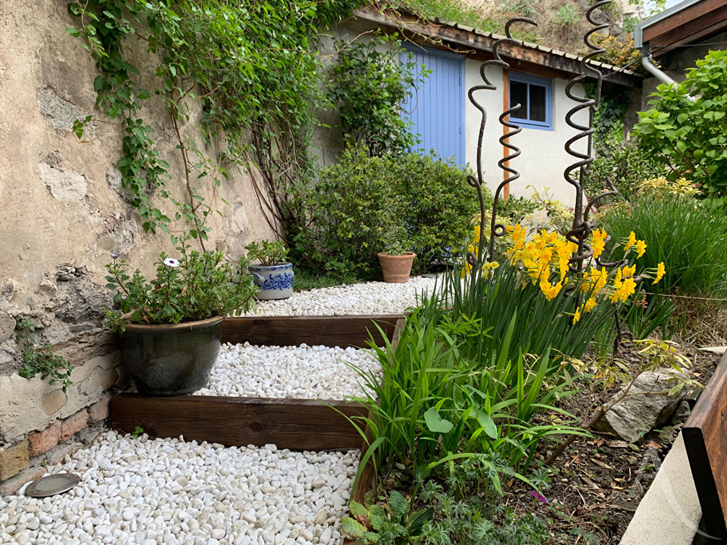 Le jardin dispose d'une belle terrasse avec un abris de jardin, un paysagiste a effectuer un travail remarquable pour une belle harmonie des végétaux.