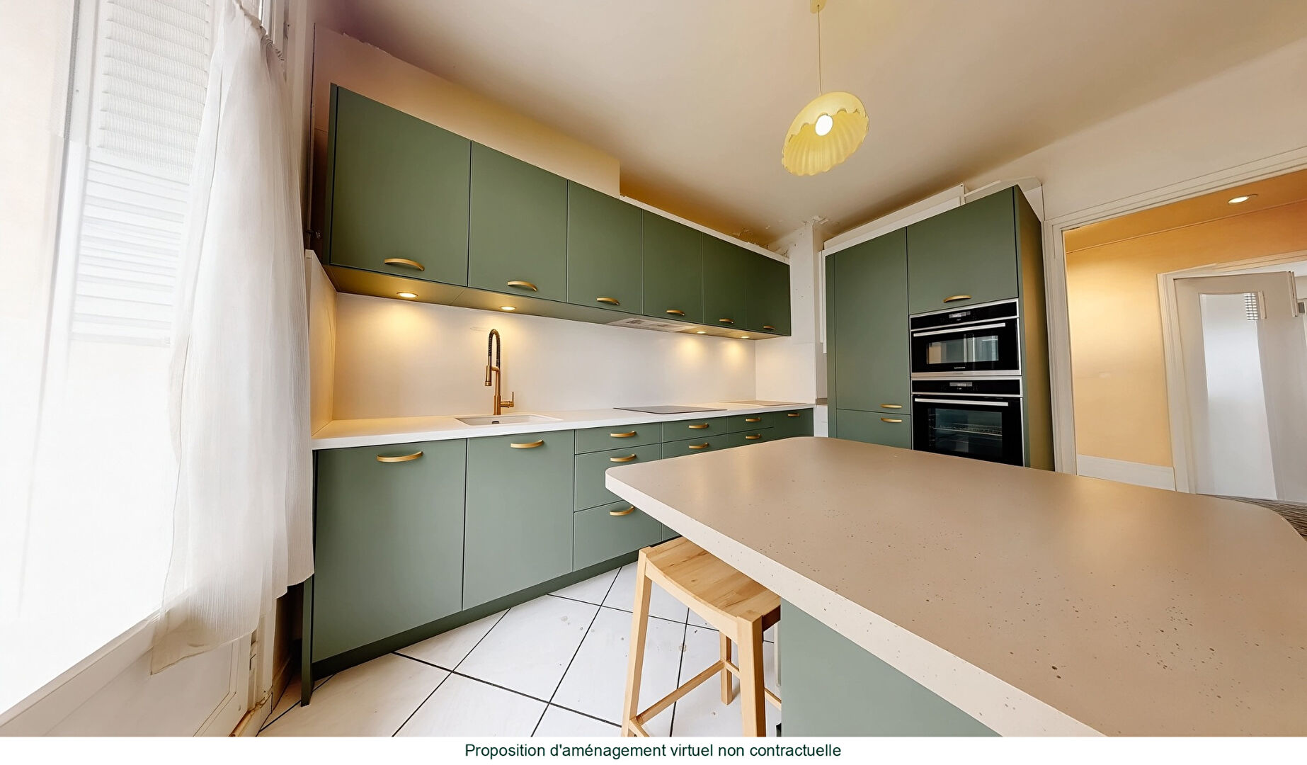 La cuisine indépendante, à la fois fonctionnelle et conviviale, permet l'installation d'un coin repas et bénéficie également d'un balcon pouvant accueillir une table et deux chaises.