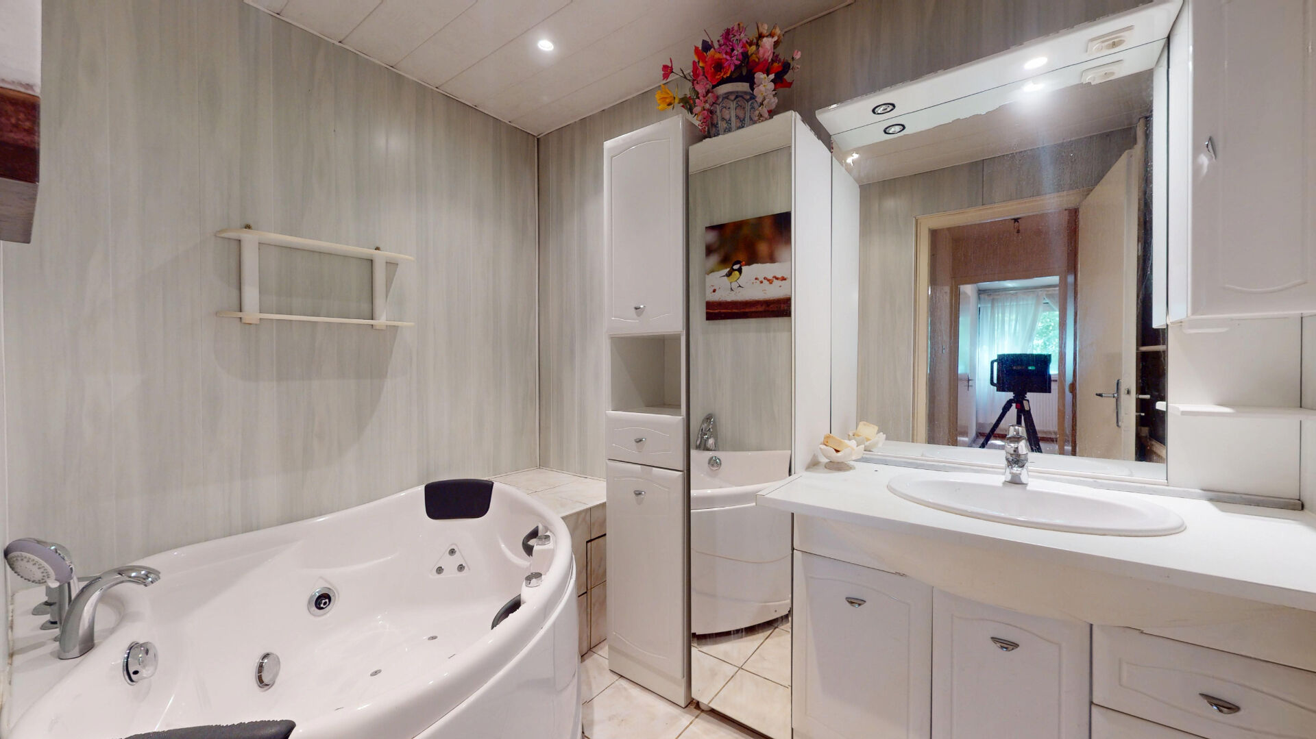 Vous avez aussi une douche à jets massant et une salle de bain avec baignoire à remous.
