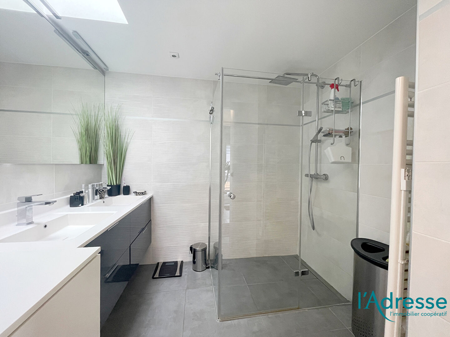 - Une salle d'eau moderne avec double vasque et douche à l'italienne.