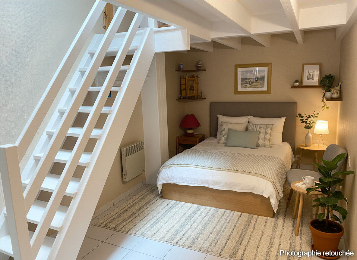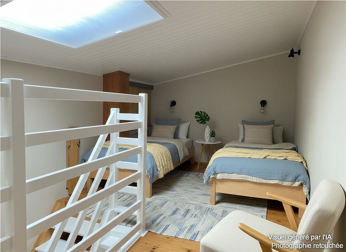- une seconde chambre de 11m² avec une mezzanine permettant 2 couchages supplémentaires
