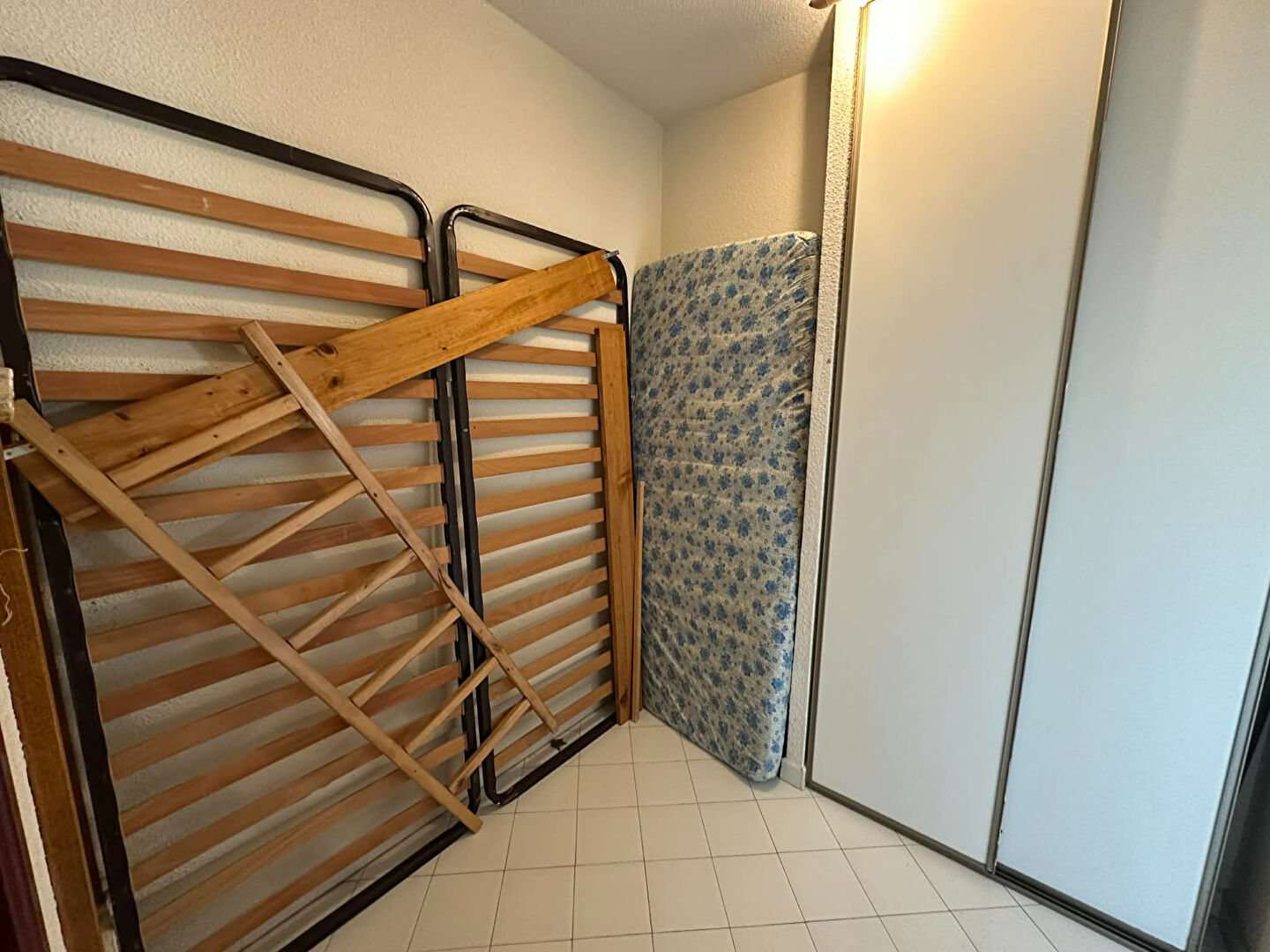 L'appartement se compose d'une entrée d'une kitchenette aménagée et équipée d'un séjour ouvrant sur une loggia de 7 m² exposée Nord d'une chambre indépendante avec fenêtre d'un coin cabine séparé actuellement transformé en dressing et d'une salle de bain avec WC.