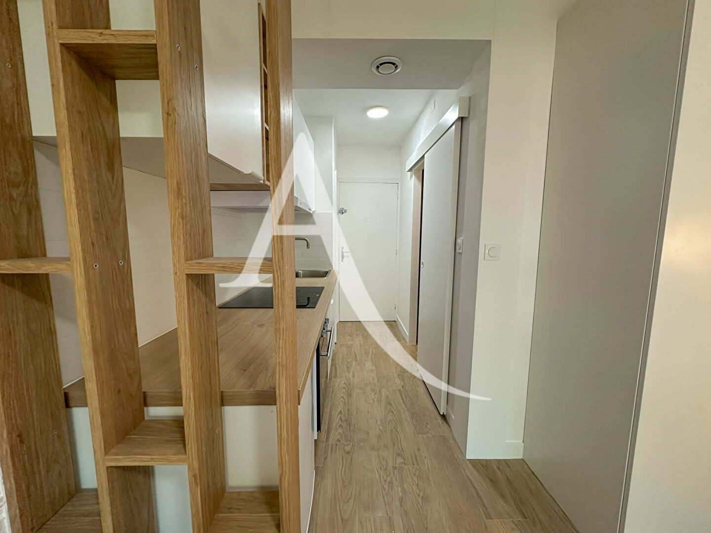 Entièrement rénové avec des matériaux de qualité, il dispose d'un espace de vie optimisé, sublimé par un mur en pierre naturelle, d'une grande cuisine moderne entièrement équipée, d'un coin nuit avec lit escamotable, d'un coin bureau avec rangements sur mesure, et d'une salle de douche contemporaine. La loggia, lumineuse et exposée Sud-Est, constitue un véritable prolongement du séjour, idéal pour profiter de la lumière et de la vue.