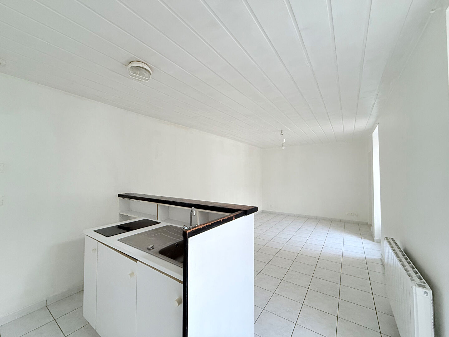 Coeur de ville rue des halles, situé dans une petite copropriété, un appartement de type T3 d'environ 58 M2 en duplex composé : entrée, une chambre, salle de bains, wc, escalier d'accès à l'étage, séjour avec coin cuisine-bar, une chambre, Chauffage individuel électrique. Quelques travaux à prévoir.