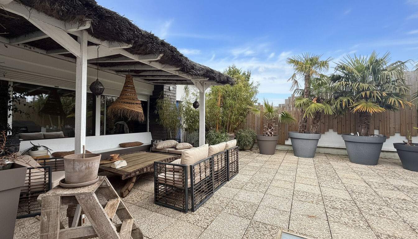 À l'extérieur, une superbe terrasse d'environ 80 m² vient prolonger les espaces de vie, offrant un cadre rare en centre-ville pour profiter de moments de détente ou de convivialité en toute intimité.