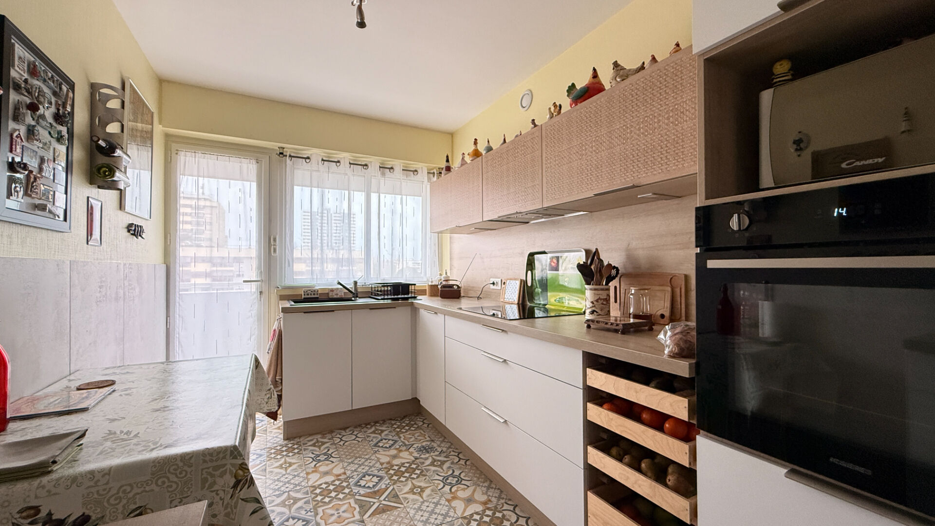 Dès l'entrée, vous serez séduit par une belle pièce de vie lumineuse comprenant un salon convivial, un espace séjour et un coin salle à manger harmonieusement agencés donnant sur un balcon. La cuisine, aménagée et entièrement équipée, offre un cadre fonctionnel et moderne.