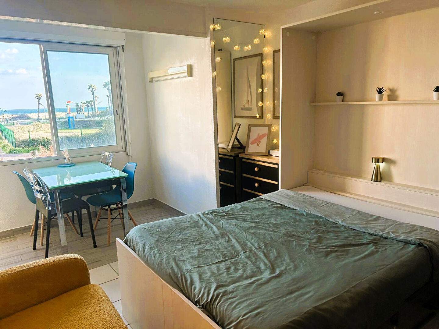 Beau studio 25.35 m2 vendu meublé face à la mer et parking!