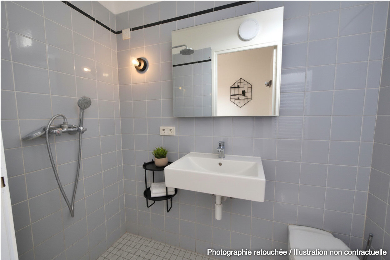 - Une salle d'eau équipée d'une douche, WC et lavabo,