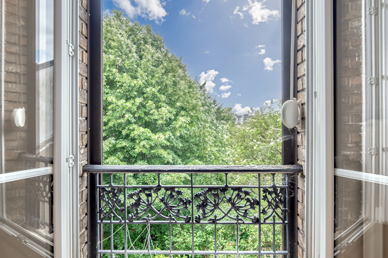 Dans un bel immeuble ancien, idéalement situé dans une petite rue calme entre le centre-ville et le RER, au deuxième étage et seul sur le palier, charmant trois pièces traversant offrant :
