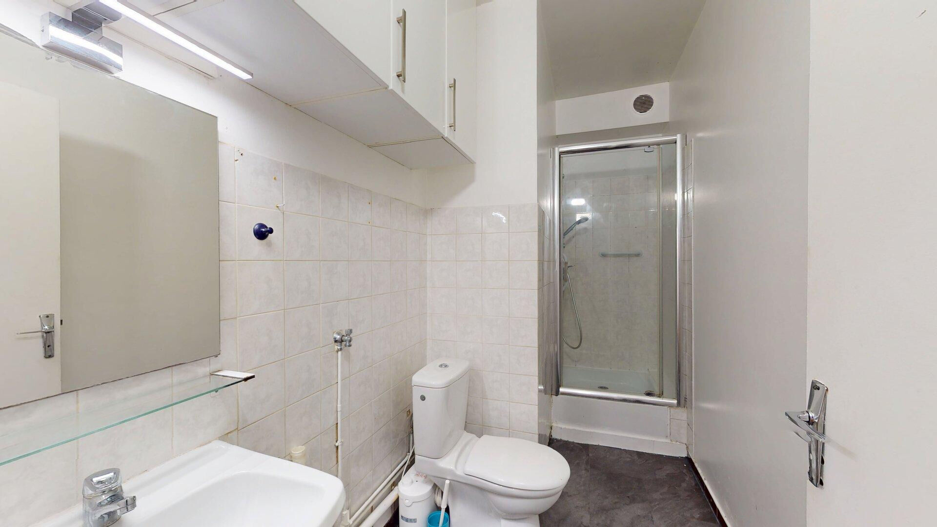 Il offre une belle hauteur sous plafond et se compose d'une entrée, d'une pièce principale avec cuisine aménagée, ainsi que d'une salle d'eau avec WC.
