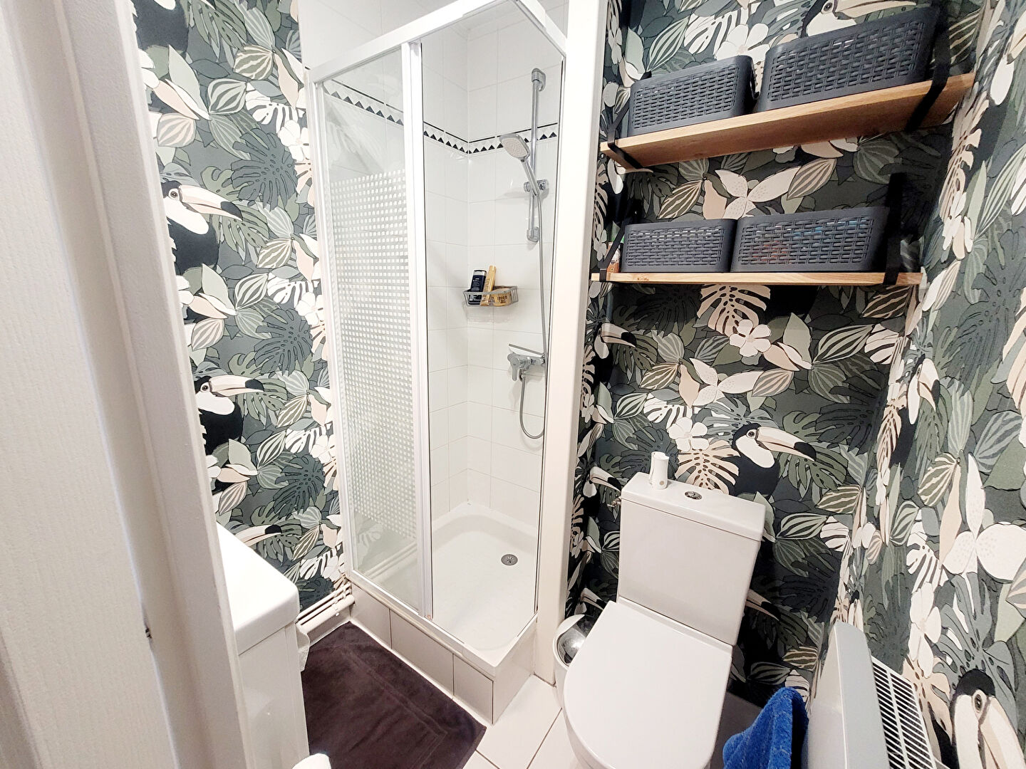 Il comprend : une entrée, une cuisine équipée ouverte, un séjour cathédrale avec accès terrasse, une chambre avec placard donnant sur un balcon, salle de douche avec wc.