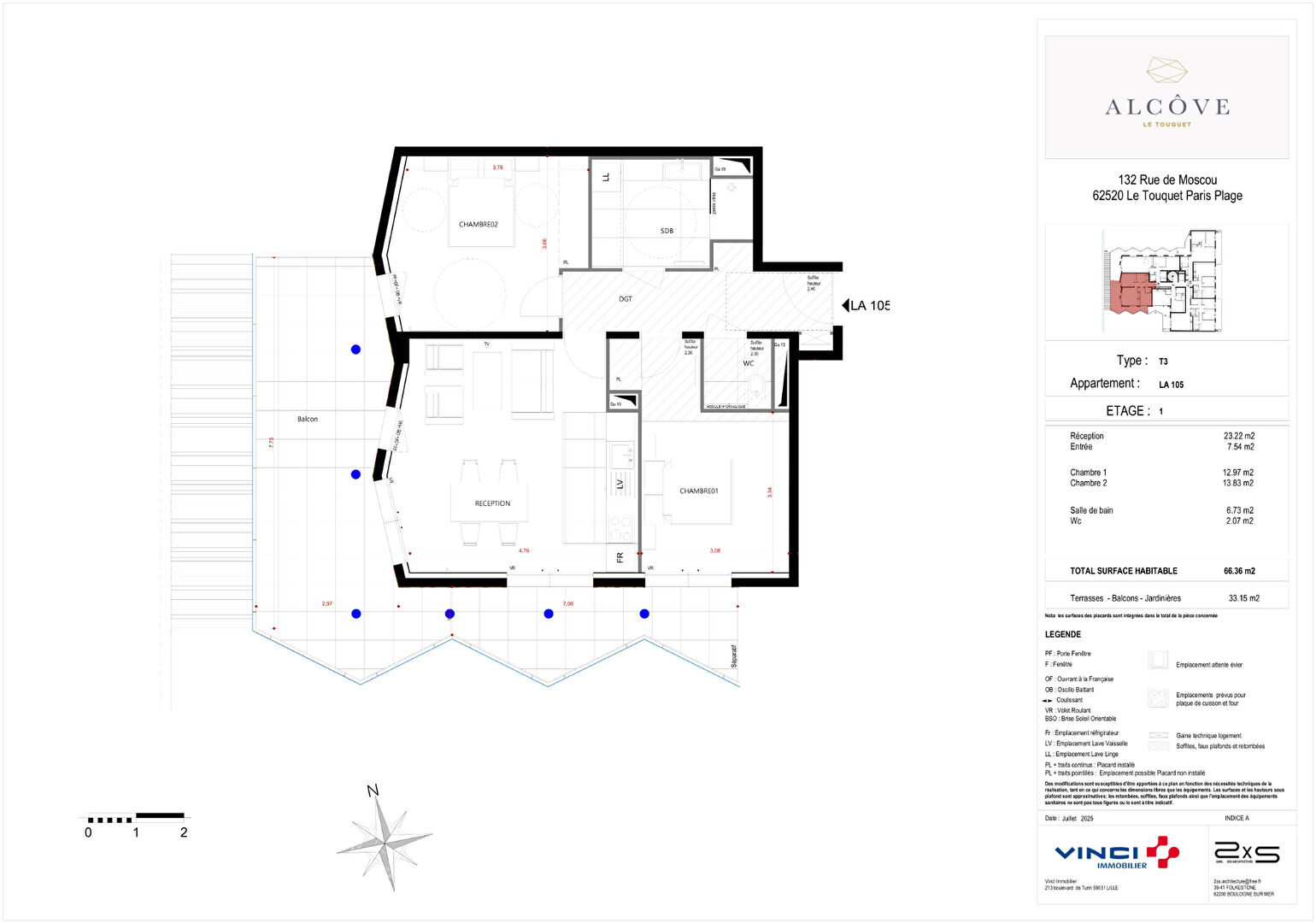 Appartement 3 pièces 66.36 m² + terrasse 33,15 m²