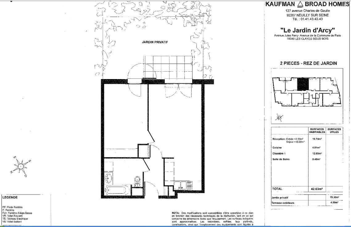 - Vente appartement 2 pièces, 42.85m², Les Clayes-sous-Bois