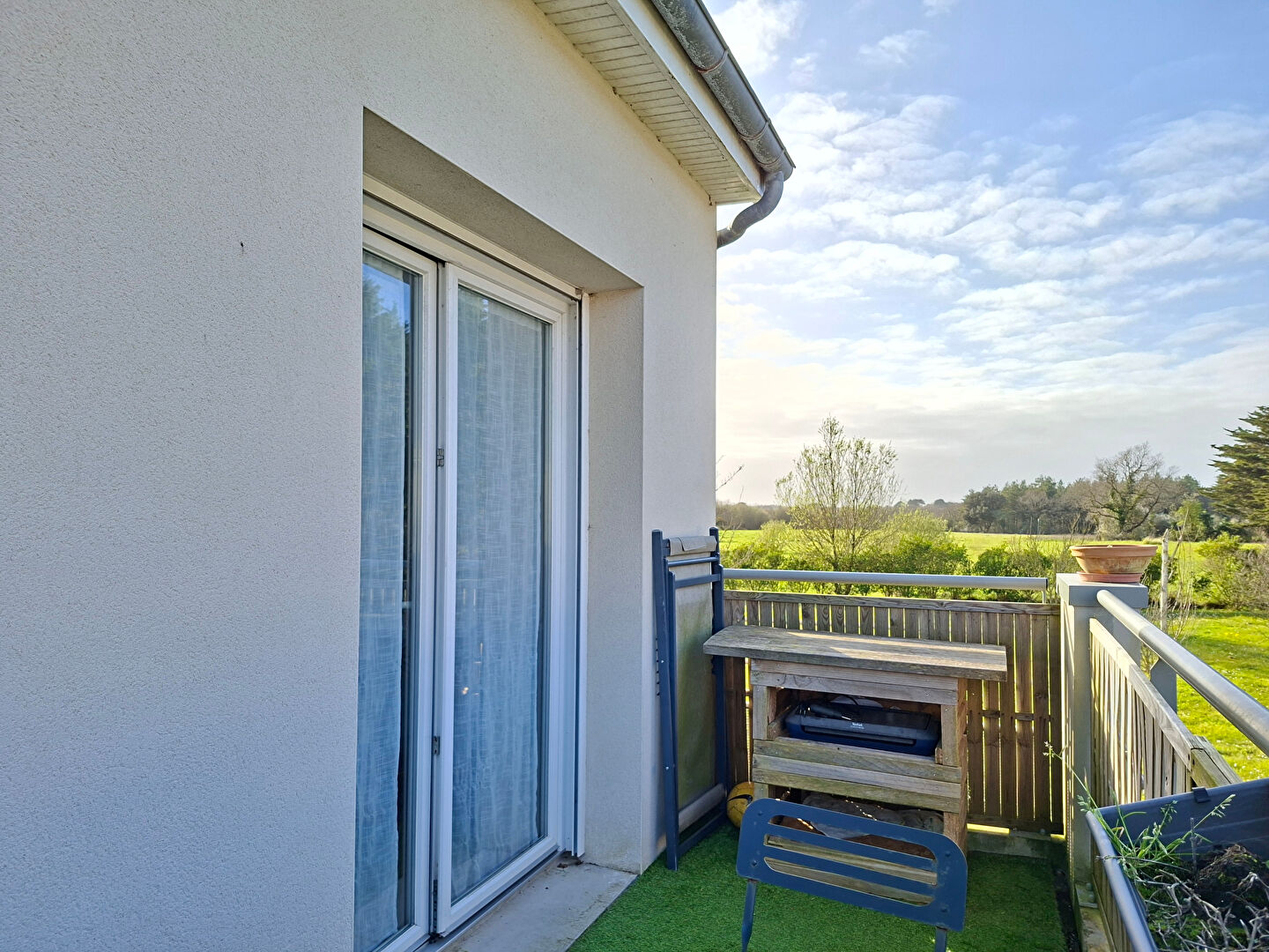 Un balcon permet de profiter de l'extérieur.