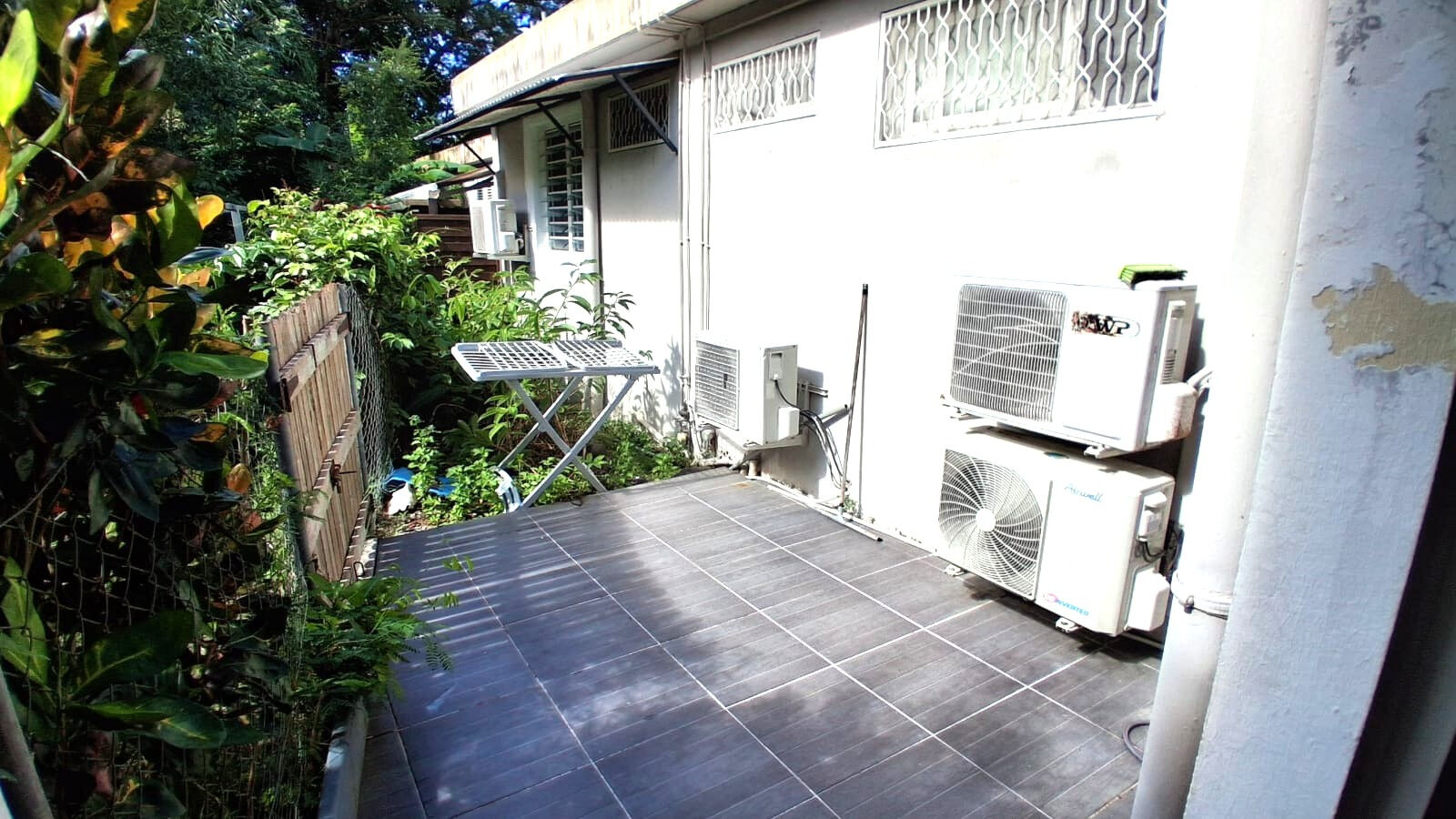 Une agréable terrasse couverte, ouverte sur un environnement verdoyant, idéale pour les repas et moments de détente