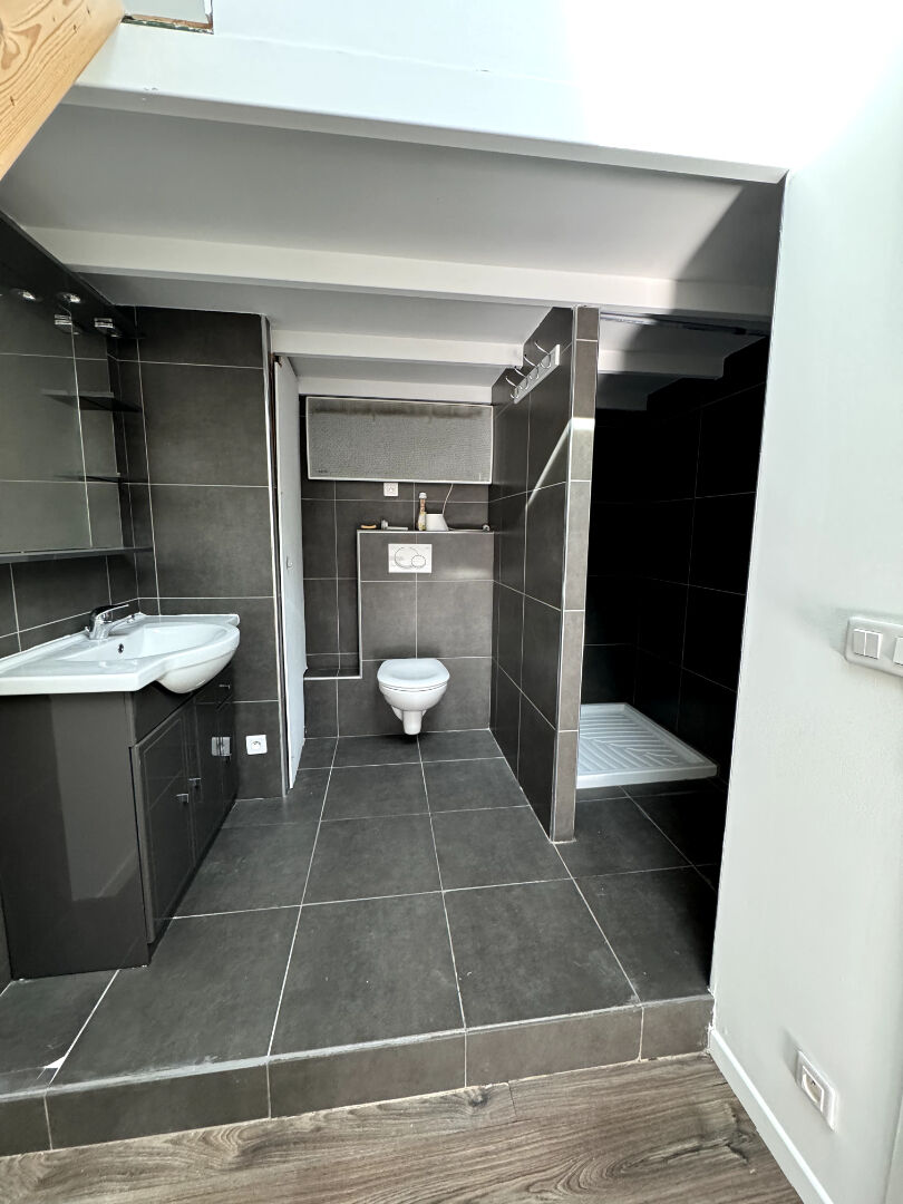 Au deuxième niveau, une chambre avec placard intégré ainsi qu'une salle de douche avec toilettes.