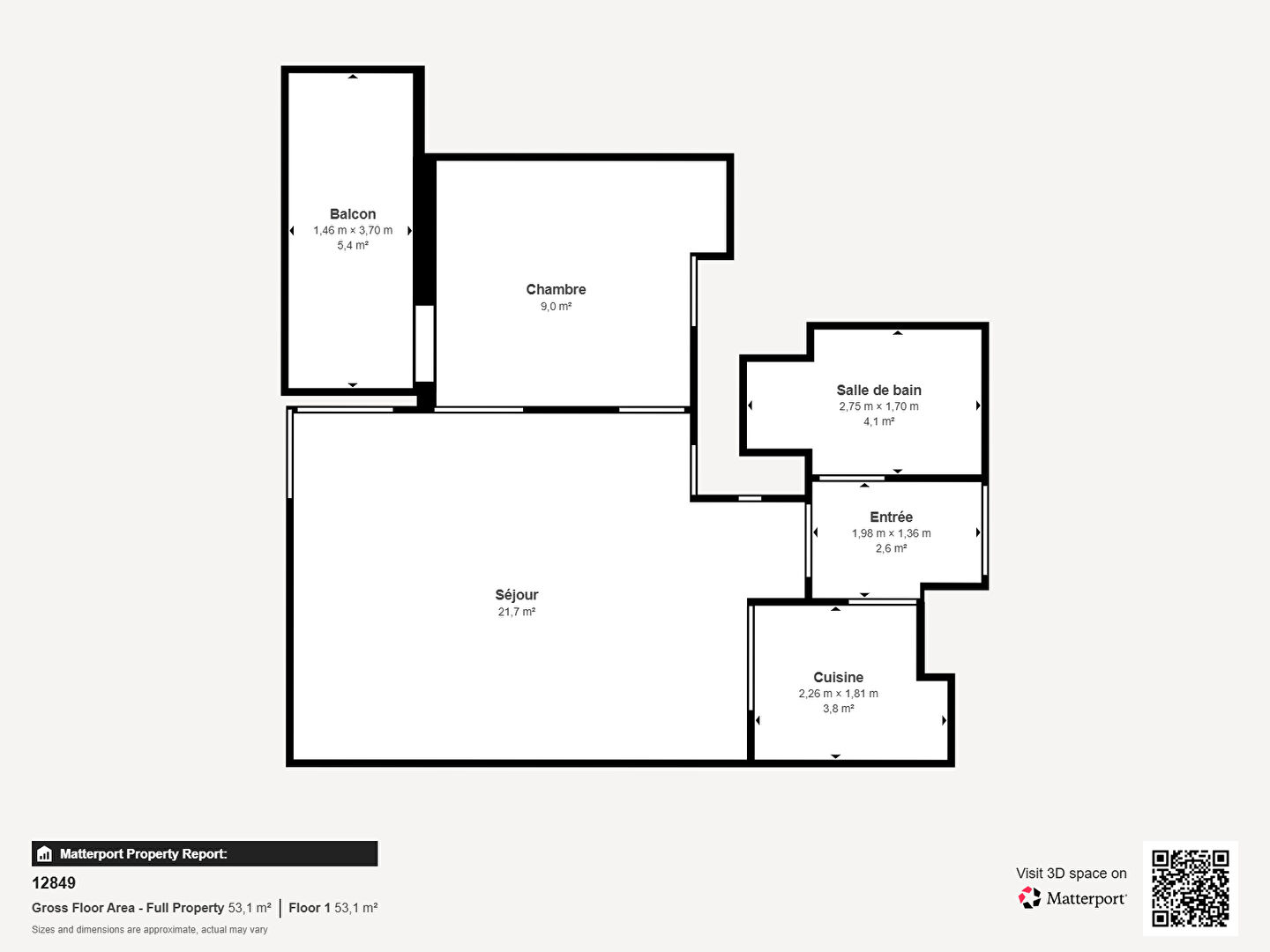 L'appartement se compose d'une entrée, d'un séjour lumineux ouvrant sur un balcon, d'une cuisine semi-ouverte, aménagée et équipée, d'une chambre avec placard donnant également accès au balcon, ainsi que d'une salle de bains avec WC.