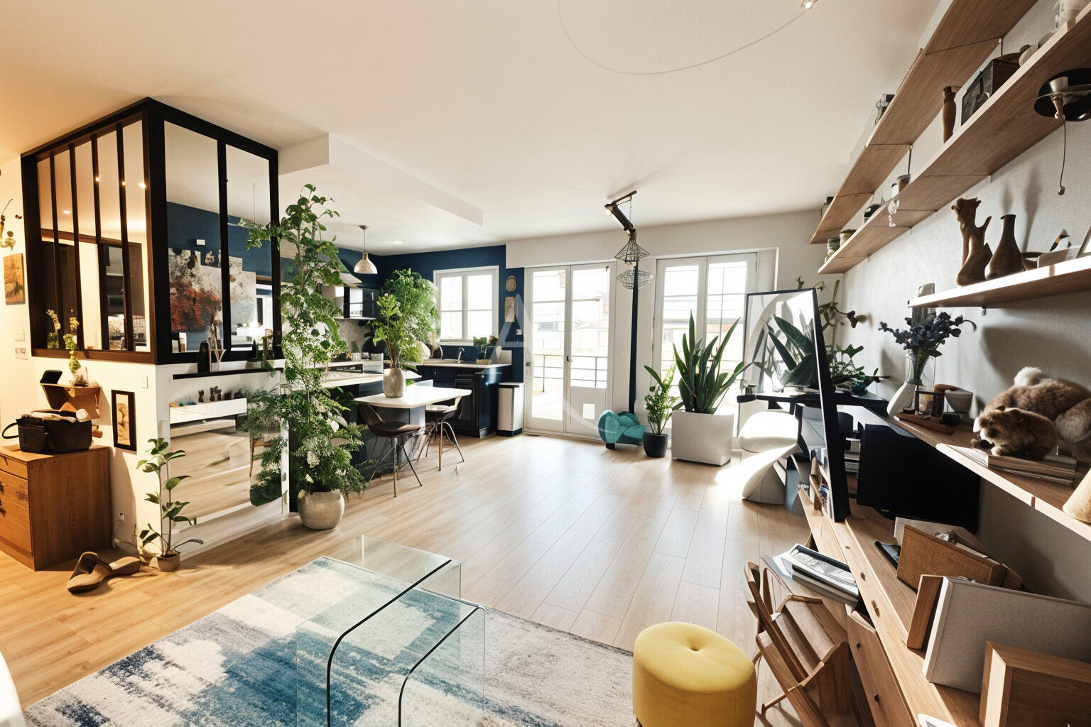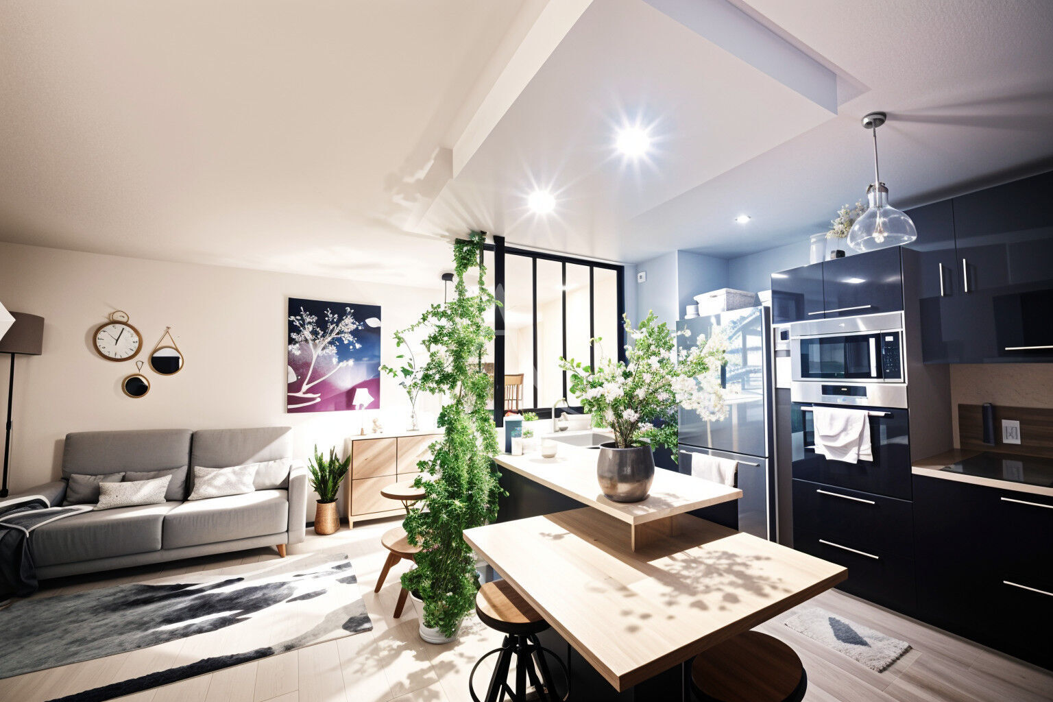 Il s'ouvre sur une entrée donnant sur un vaste séjour lumineux accompagné d'une cuisine ouverte aménagée et équipée, pour une belle pièce de vie d'environ 33 m².