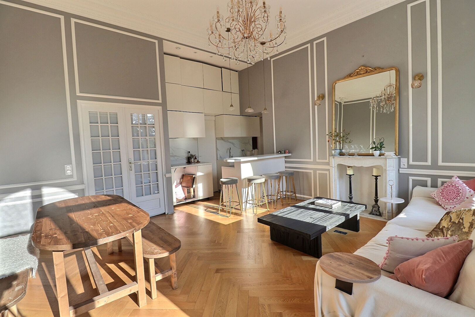 L'ADRESSE MAISONS-LAFFITTE vous propose en EXCLUSIVITÉ dans le Triangle d'Or de Maisons-Laffitte un joyau alliant charme haussmannien et modernité. Au coeur du prestigieux Parc de Maisons-Laffitte à deux minutes du manège emblématique et à 6 minutes à pieds de la gare (RER A), cet appartement d'une surface au sol de 86 m2 (78 en Loi Carrez) séduit par sa façade élégante et ses intérieurs lumineux. Le salon, agrémenté d'une cheminée décorative en marbre et d'un magnifique lustre, s'ouvre sur une cuisine américaine équipée. Les boiseries, moulures et parquets en chêne soulignent le cachet de ce bien rare. La hauteur sous plafond de 3,60 m apporte un cachet supplémentaire et un ressenti des volumes très différent.