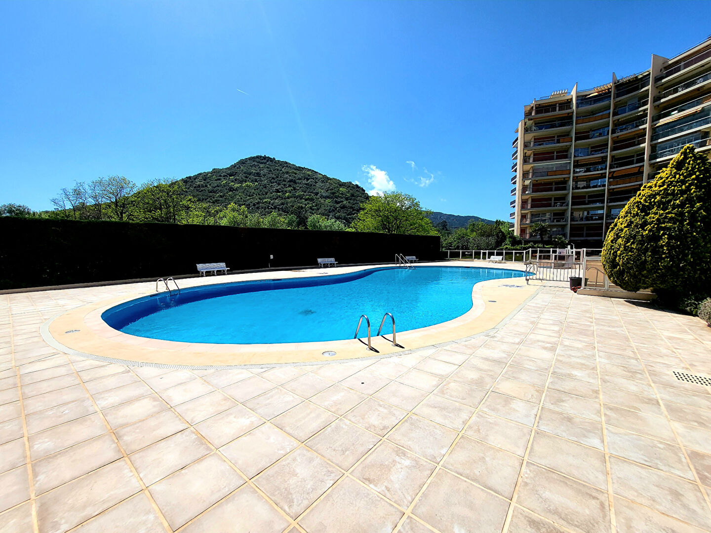 Dans une résidence de standing avec piscine et gardien, venez découvrir ce beau 2 pièces de 46 m² composé comme suit : un spacieux et lumineux séjour qui ouvre sur une agréable terrasse ensoleillée, une cuisine indépendante, une chambre, une salle de douche et un WC invité.
