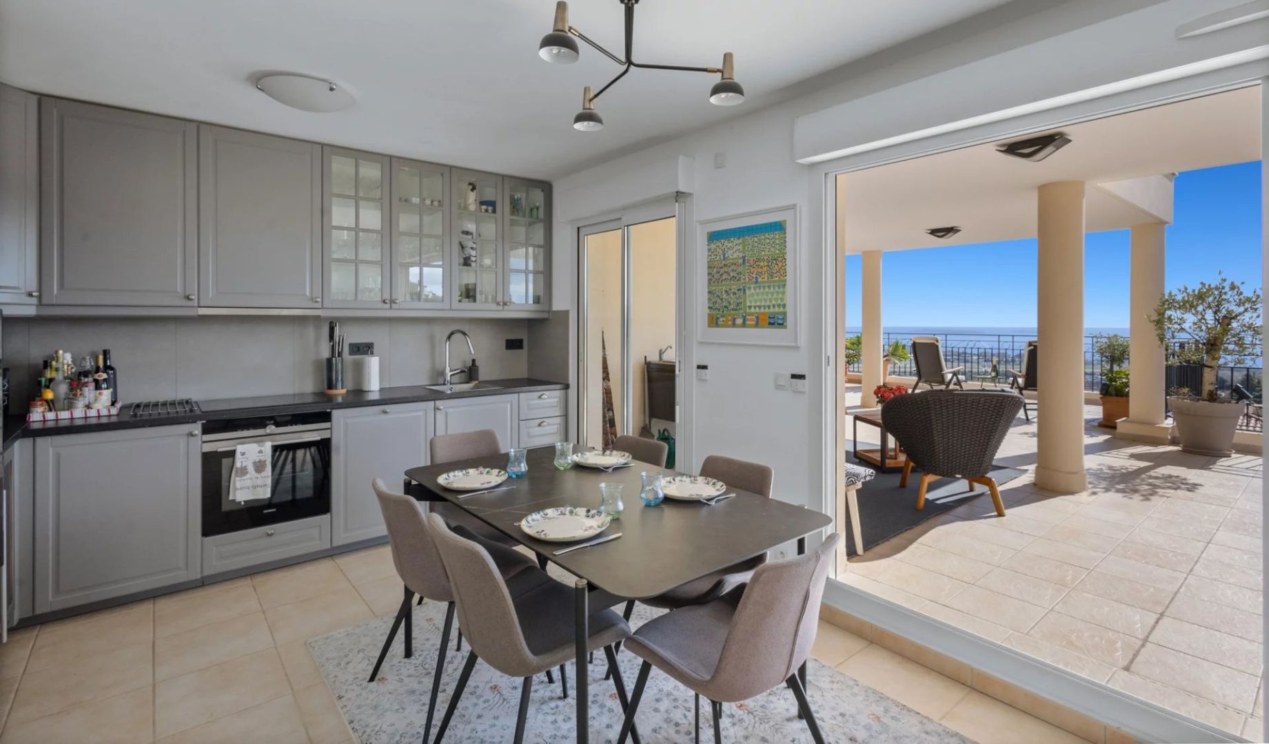 Situé au 4ème étage d'une résidence de standing, ce superbe appartement séduit par sa magnifique vue sur la mer et sa vaste terrasse ensoleillée. En parfait état, il offre une entrée avec séjour et cuisine ouverte, 2 chambres et une salle de bains. L'ensemble présente un design contemporain et une atmosphère élégante.