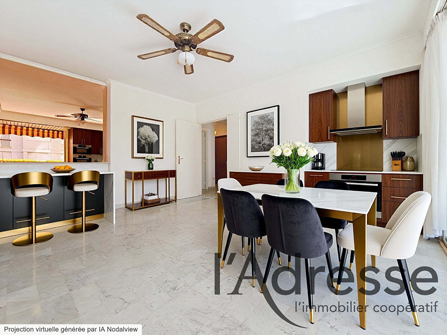 Une reconfiguration en 3 pièces est facilement envisageable : transformation de la cuisine en chambre, création d'un espace cuisine/salle à manger dans le séjour et aménagement d'un salon dans la loggia, comme déjà réalisé dans de nombreux appartements de la résidence.