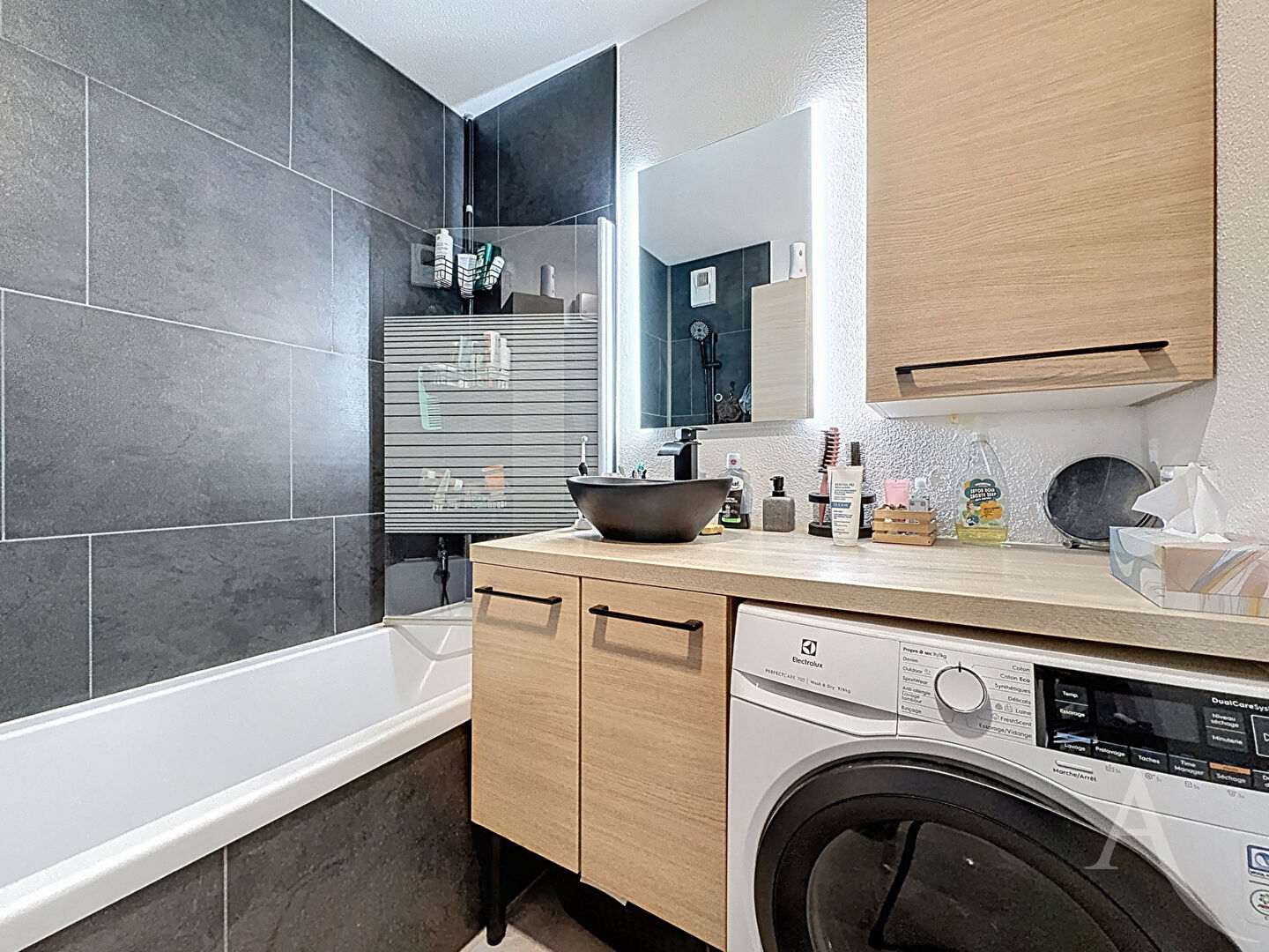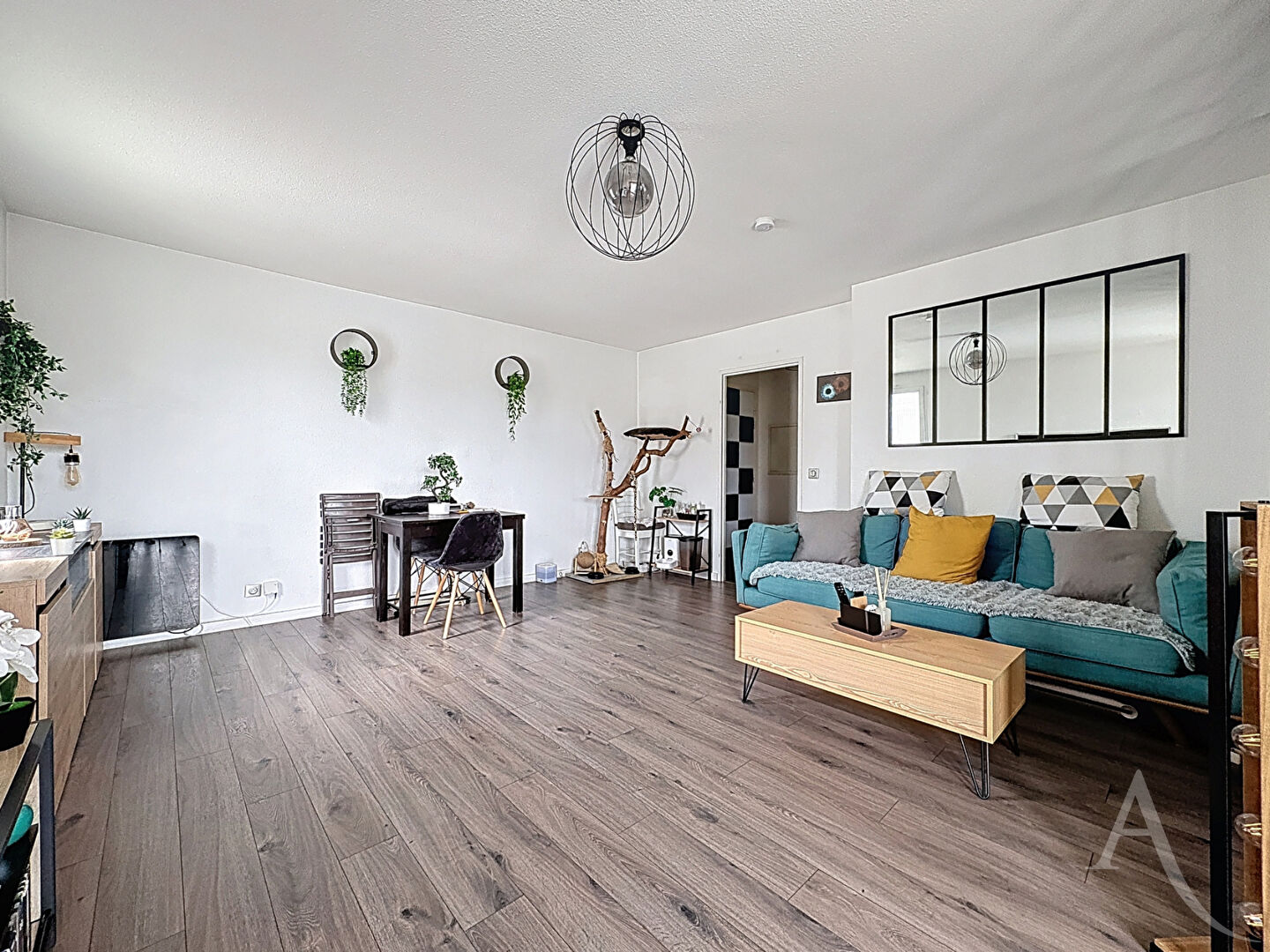 Bel appartement de 64 m², il se compose d'une entrée avec placards, une salle de bain, un wc, de 2 chambres avec un placard, une cuisine ouverte sur le salon et un balcon terrasse