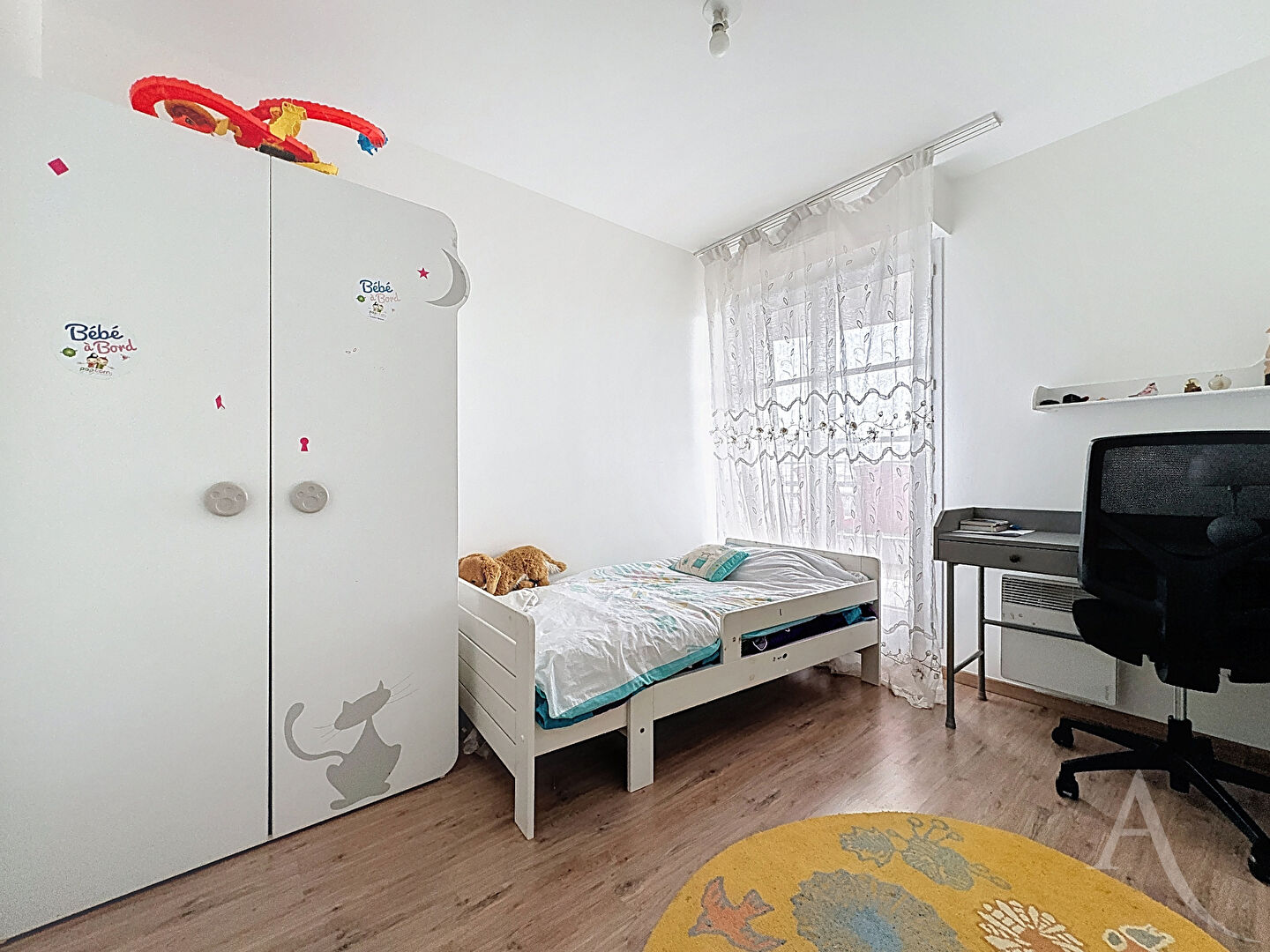Il se compose d'une entrée avec rangements, d'un bel espace de vie lumineux qui dispose d'un balcon et d'une cuisine américaine aménagée et équipée, d'un dégagement avec rangements, d'un WC indépendant, d'une salle d'eau avec WC, et d'une salle de bains avec espace buanderie, ainsi que de trois chambres avec placard donnant accès au balcon.