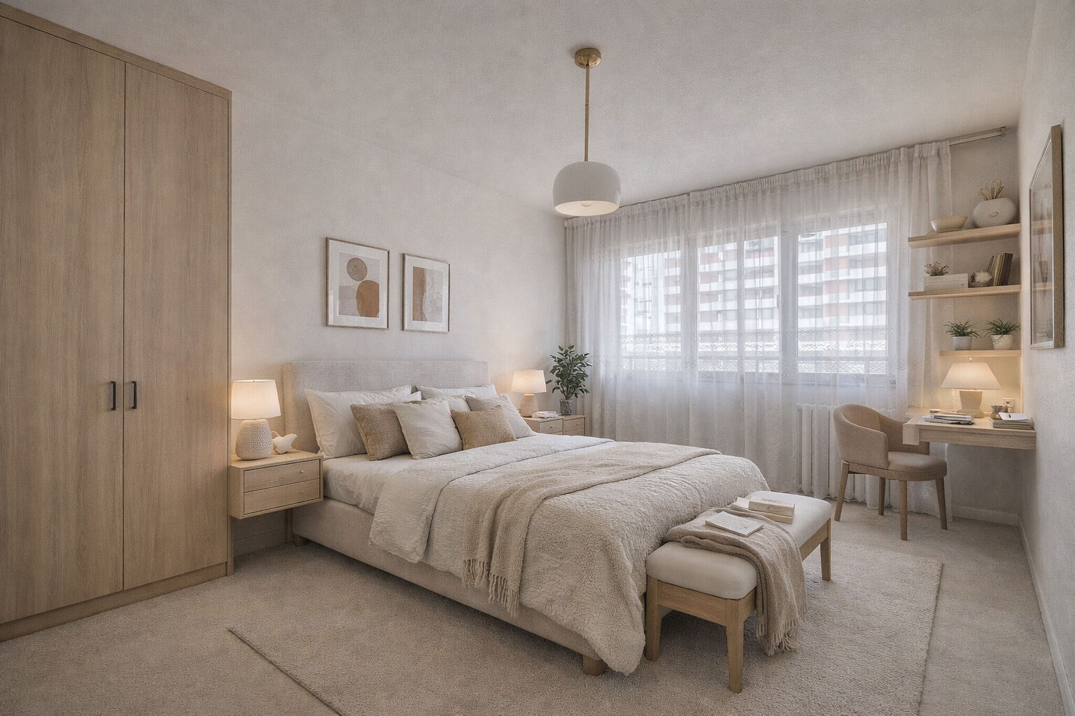L'appartement dispose actuellement de deux chambres, dont une avec dressing, mais permet facilement la création d'une troisième chambre ou d'une véritable suite parentale avec salle d'eau, idéal pour accompagner l'évolution de votre famille.