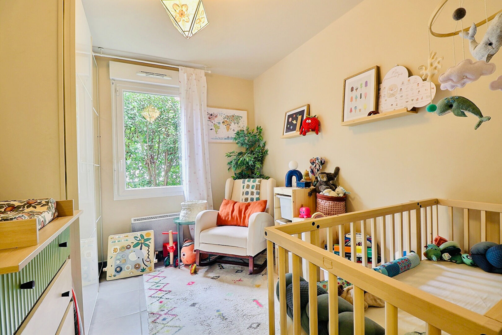 L'espace nuit offre deux chambres, un dressing, une salle d'eau, un WC séparé et de nombreux rangements.