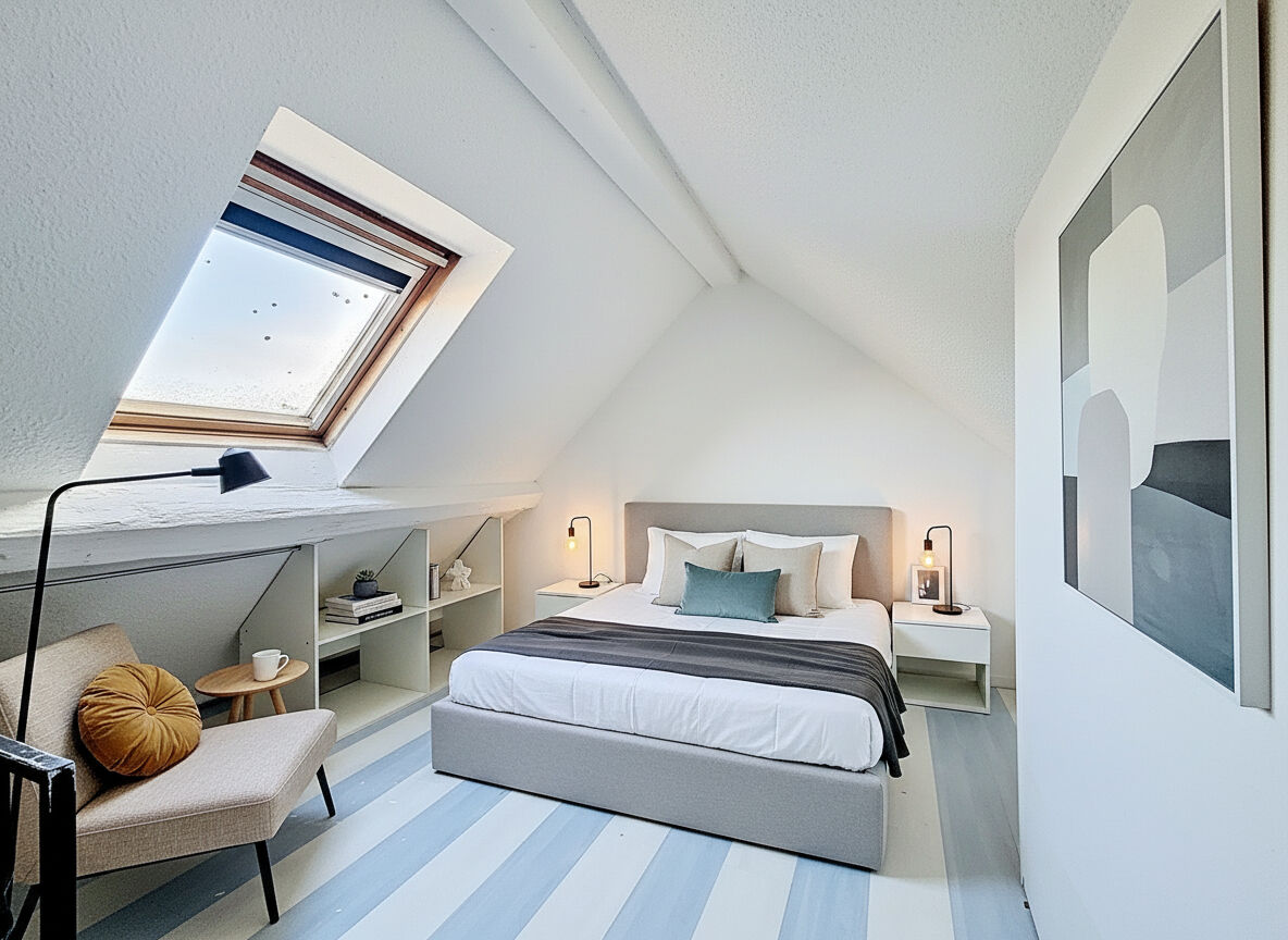 A l'étage, vous pourrez profiter d'une chambre avec ses rangements.