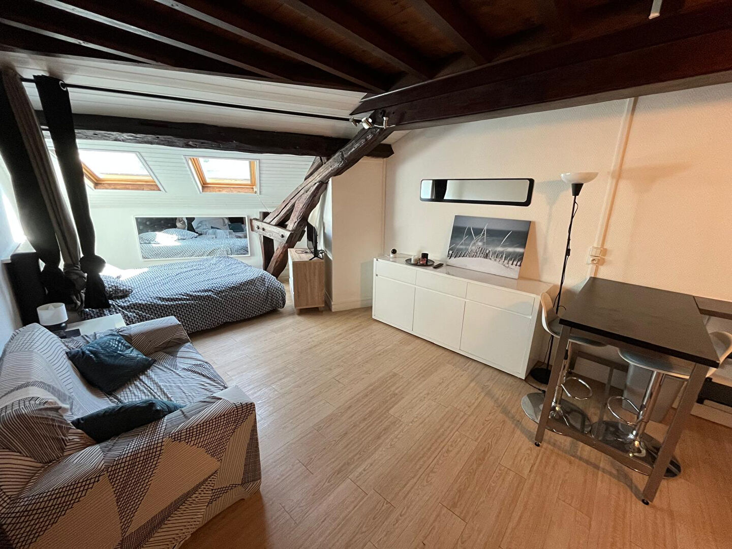 En plein coeur de ville, à proximité des commerces et des transports, dans une petite copropriété à faibles charges et sécurisée, situé au troisième et dernier étage, studio plein de charme avec poutres apparentes de 23 m² vendu entièrement meublé, il offre une belle pièce de vie avec kitchenette et coin nuit, une salle d'eau avec toilettes et machine à laver. Aucun travaux à prévoir, idéal première acquisition !