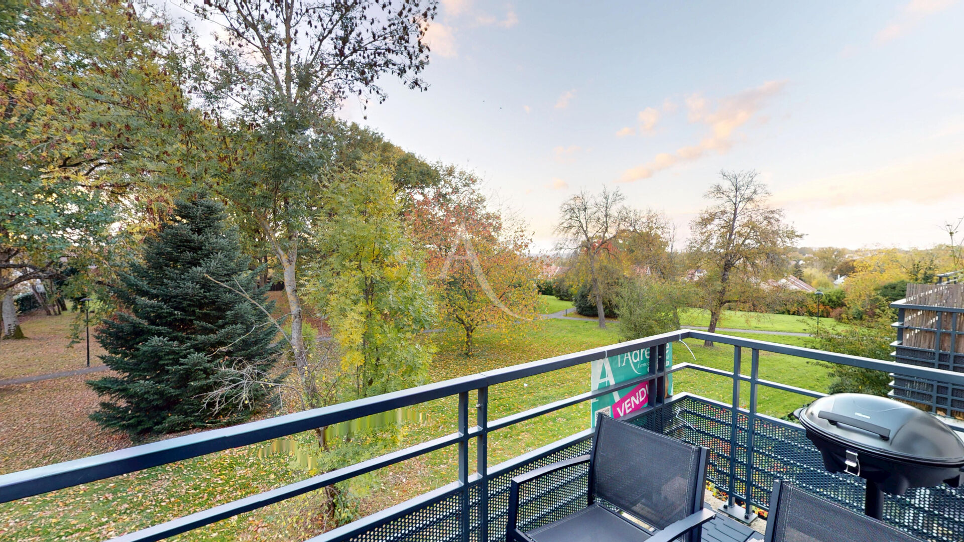 Les 42 m² sont parfaitement optimisés : une vraie pièce de vie (presque la moitié de la surface !), une grande chambre avec placard lumineuse, une salle de bain où on peut vraiment poser ses affaires sans jeu de Tetris, et surtout? un balcon d'environ 5 m², avec une vue sur le parc.